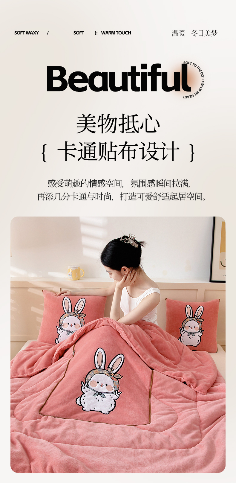 阳光依佰抱枕被 2025秋冬新款牛奶绒多功能抱枕被系列-大耳兔 大耳兔---西瓜红