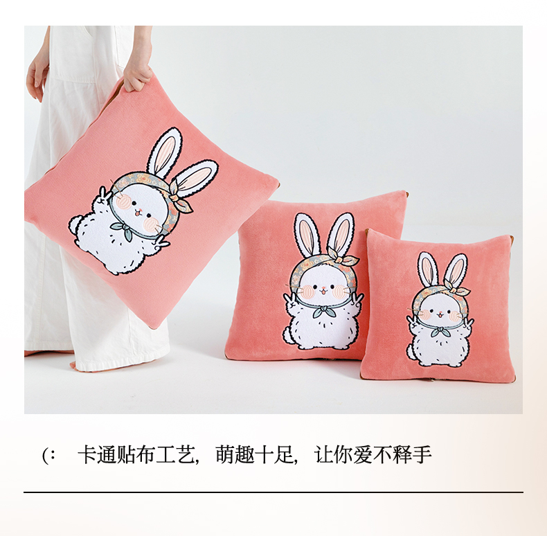 (总)阳光依佰 2023新款磨毛贴布绣四季款抱枕被-梦里兔,梦里兔-豆沙,梦里兔-粉色,梦里兔-明黄,梦里兔-墨绿,梦里兔-浅灰,梦里兔-浅蓝,梦里兔-星空蓝