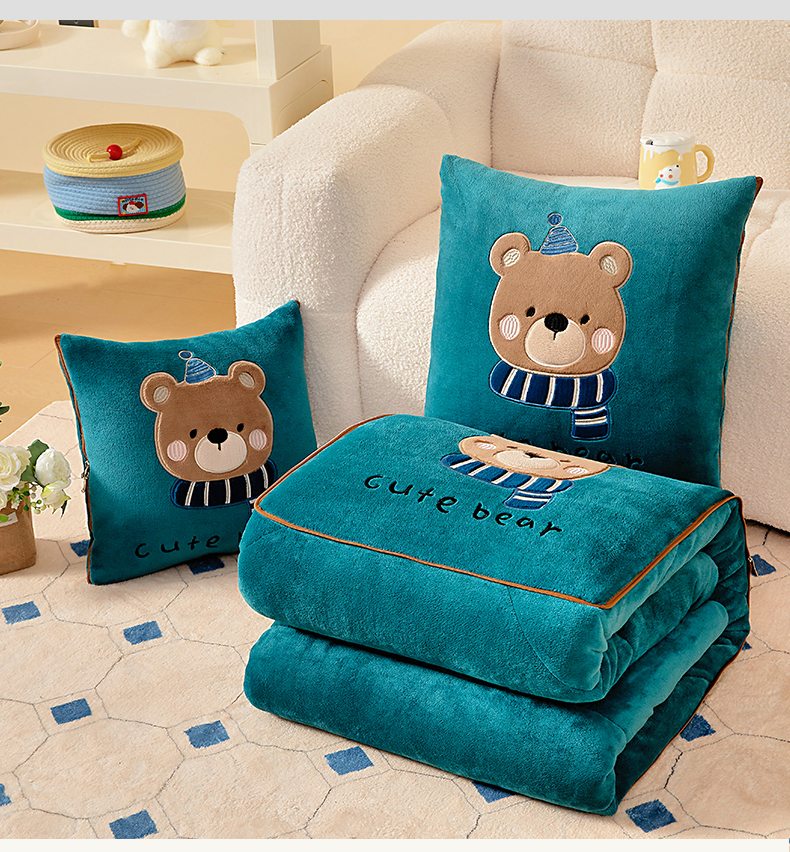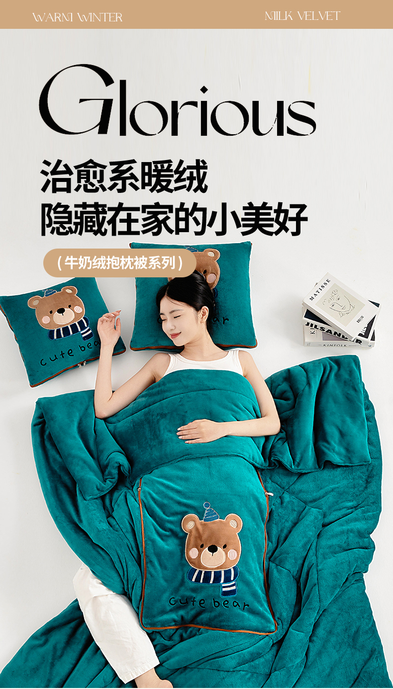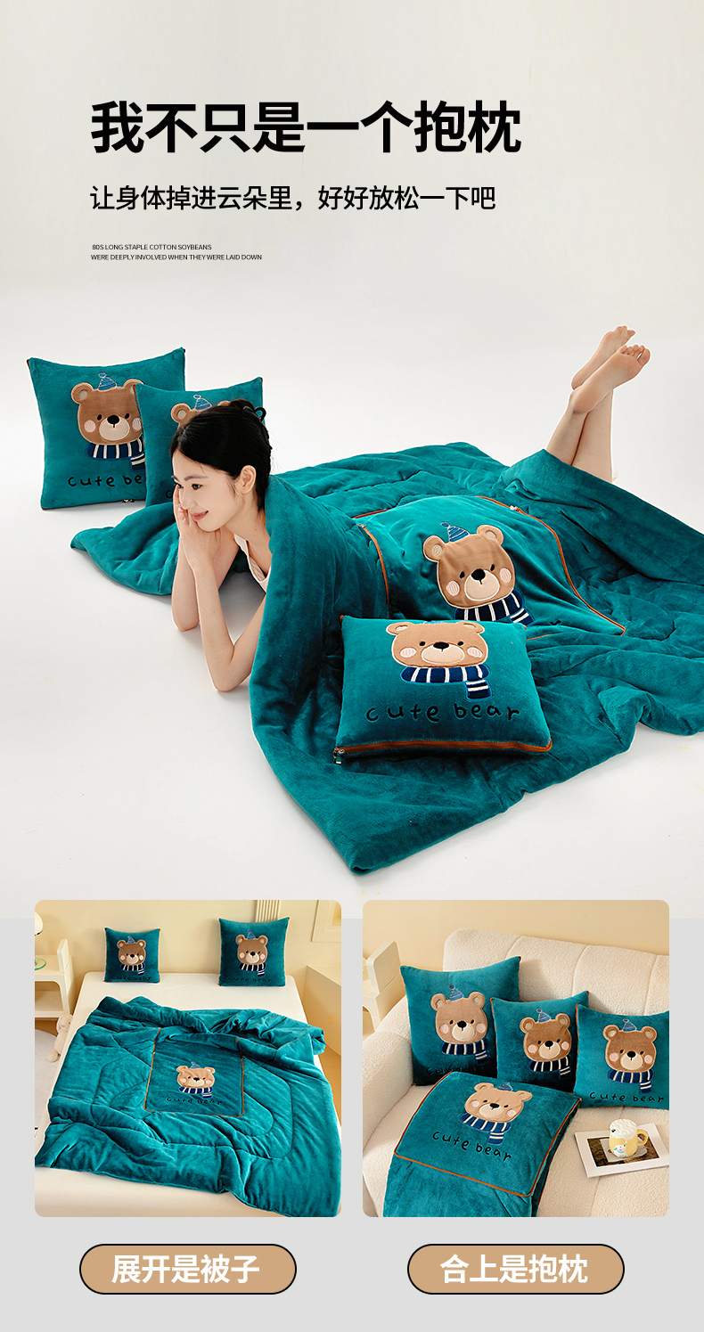 阳光依佰抱枕被 2025秋冬新款牛奶绒多功能抱枕被系列-抱抱熊 抱抱熊---孔雀绿