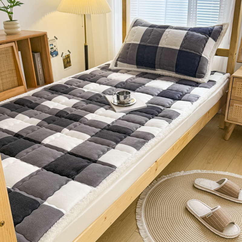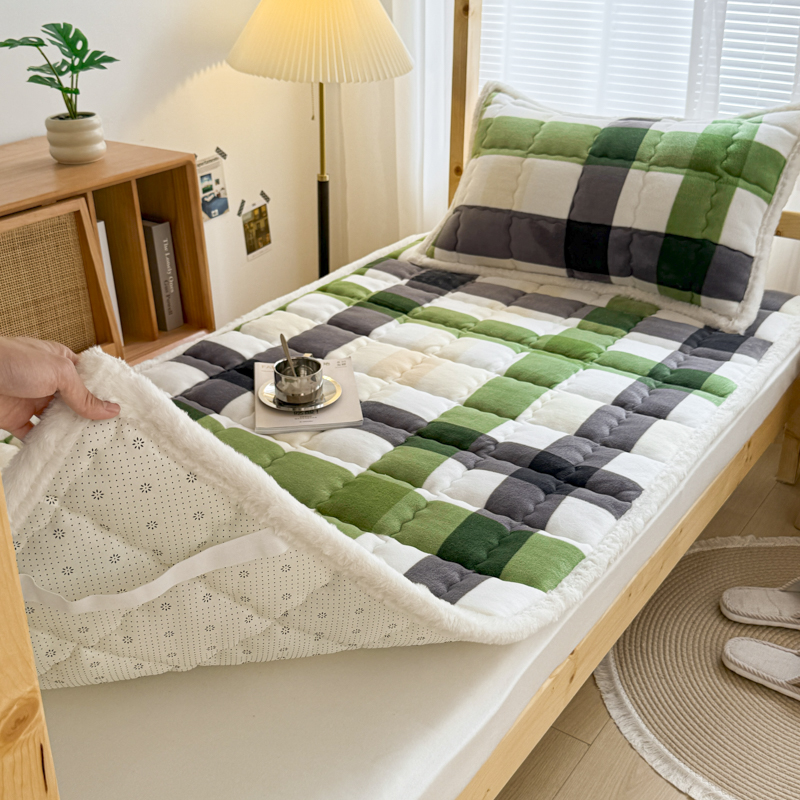 迪梦思家纺 2025新款A类牛奶绒无印风格子床褥床护垫学生床垫--学生床图 平铺款-森系格