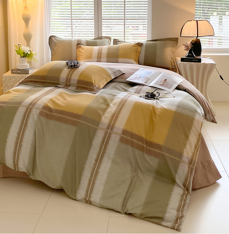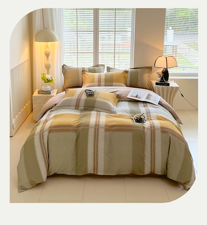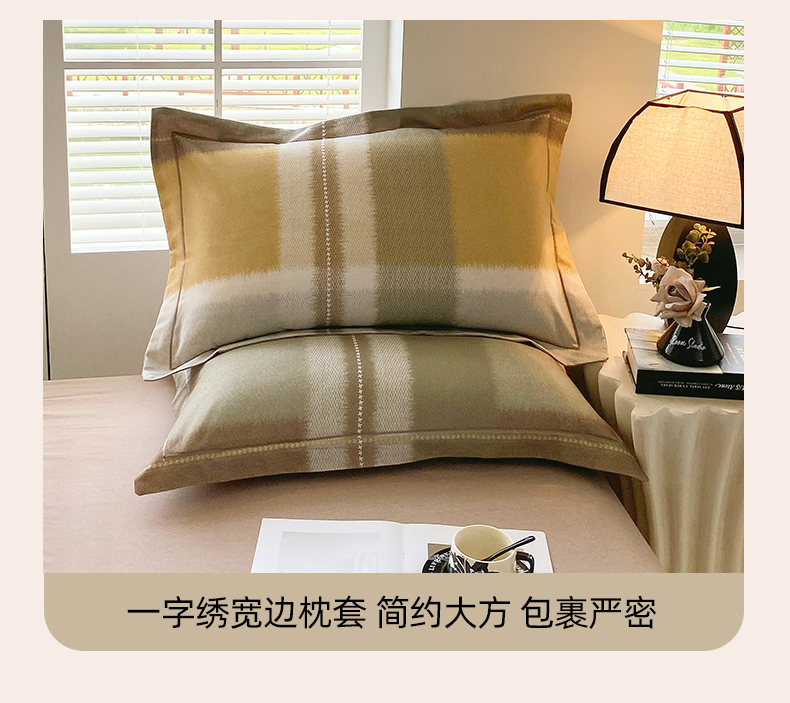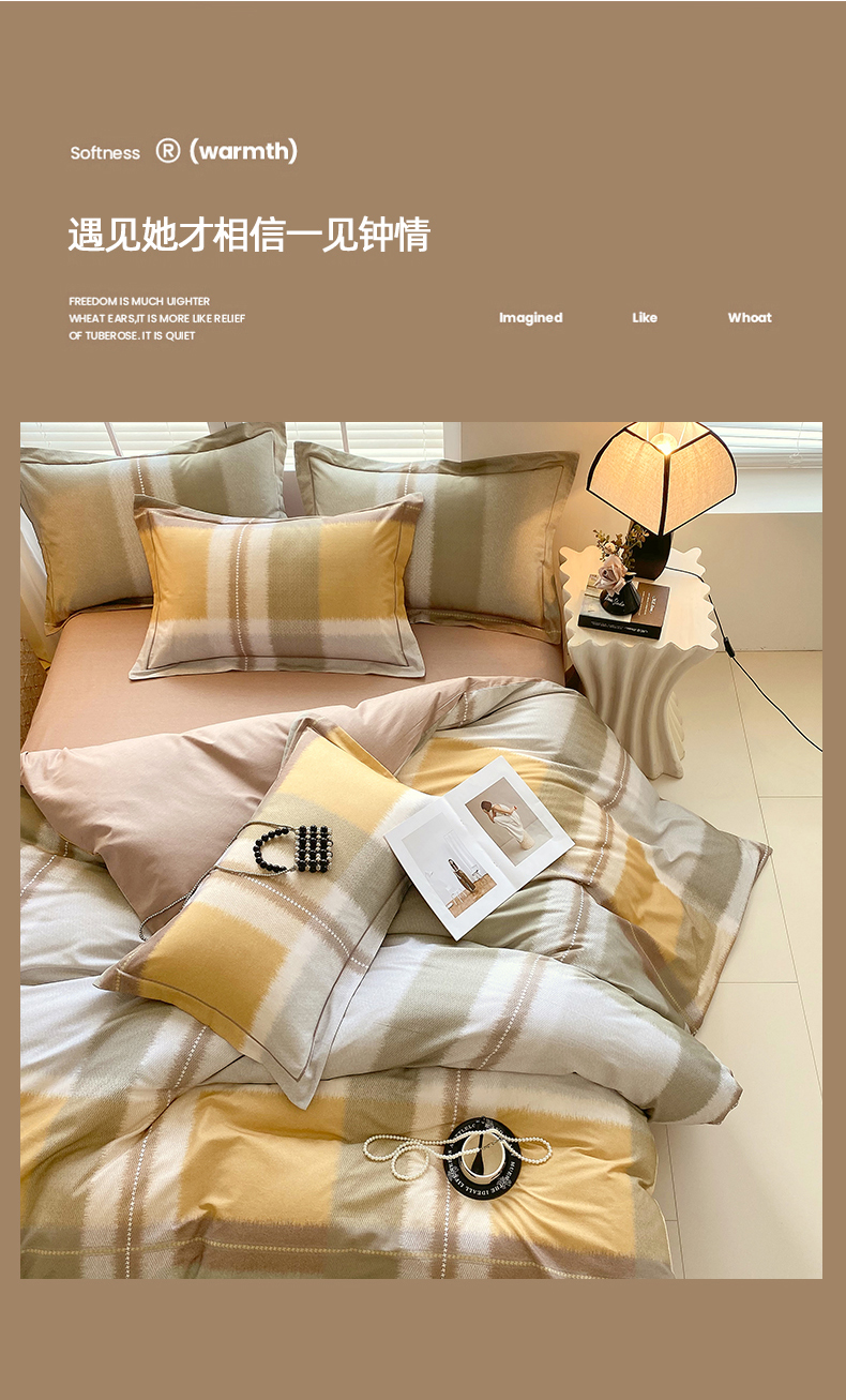 威布斯 2025新疆棉全棉生态加厚磨毛四件套凯西-黄