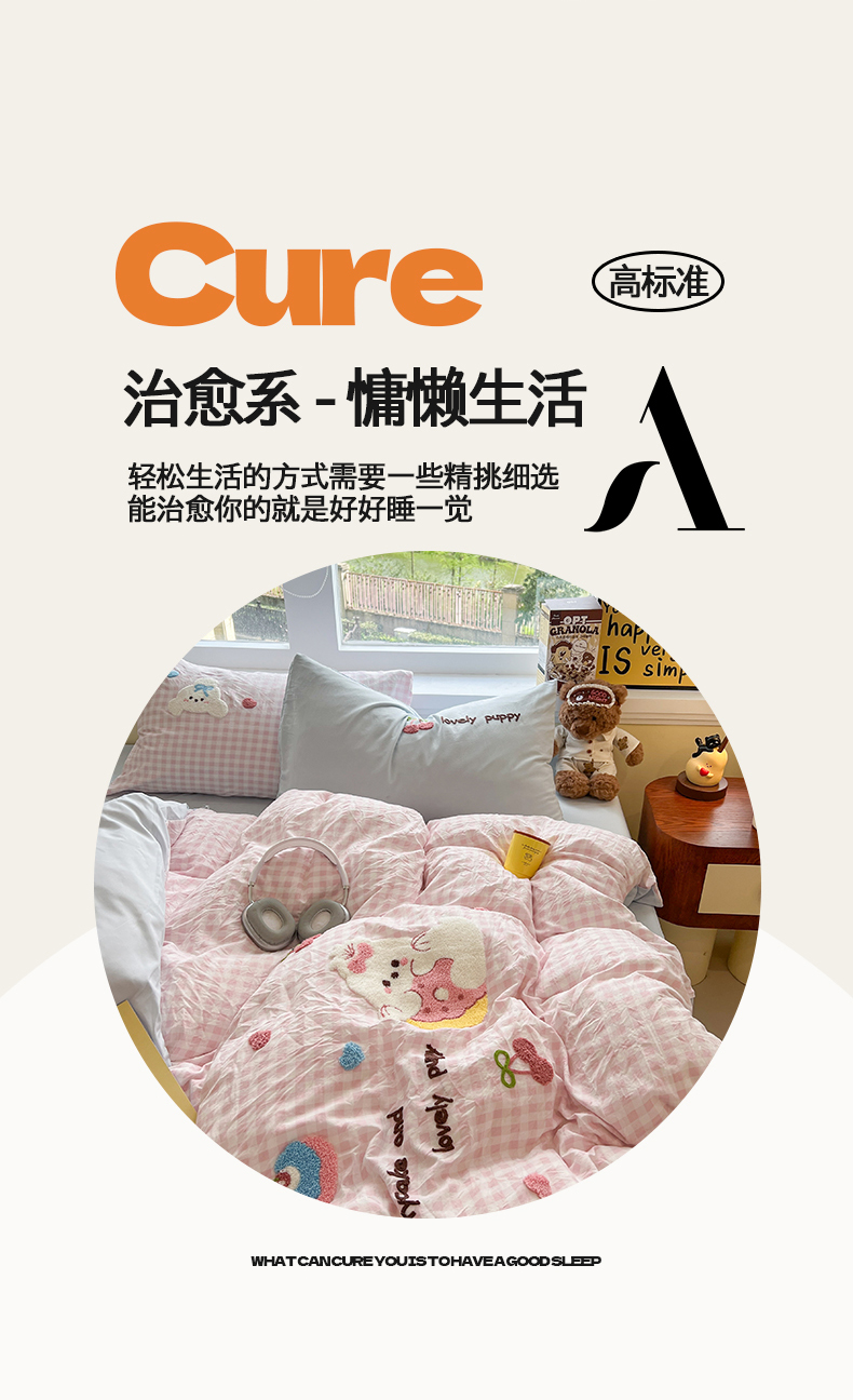 当前位置: 91家纺网 > 商品网购 > 床品套件 > 四件套 > 水洗棉四件套 > 桃心家居 2025新款A类亲肤舒适软糯云柔水洗棉少女卡通格子混搭毛巾绣水洗棉系列四件套 云柔水洗棉-毛巾绣樱桃小兔