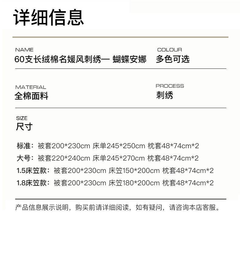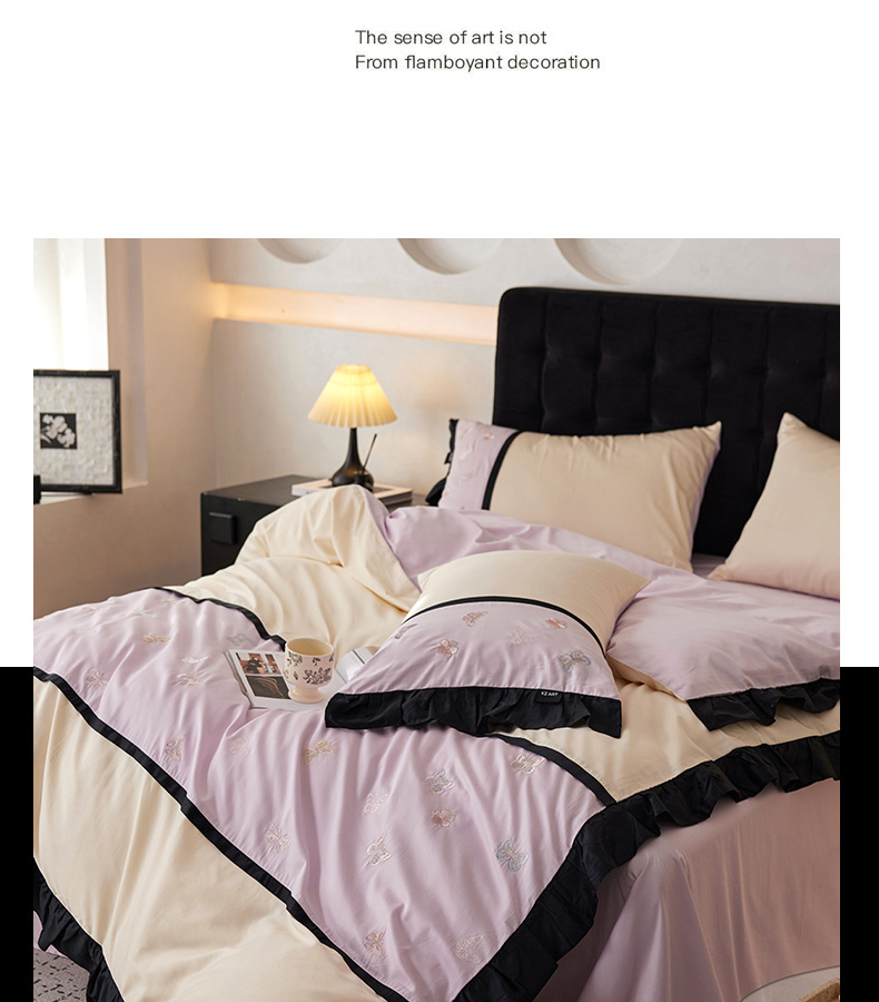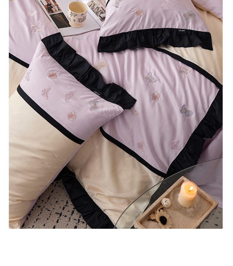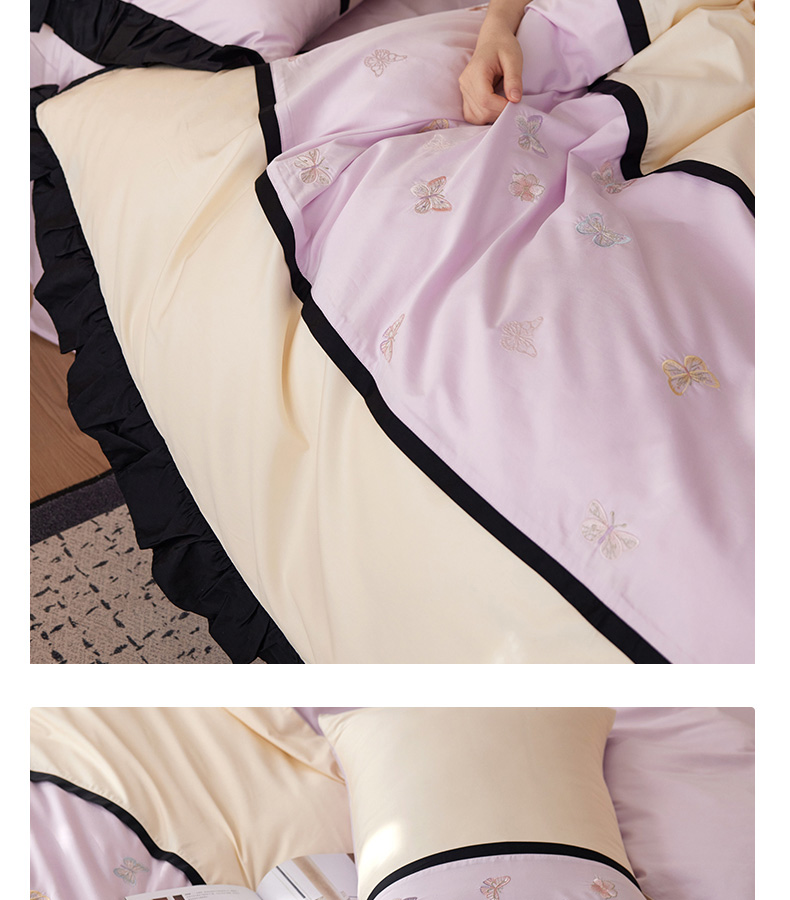 商品名称:卡姿家纺 2025秋冬60支长绒棉名媛风刺绣四件套-蝴蝶安娜 蝴蝶安娜-紫