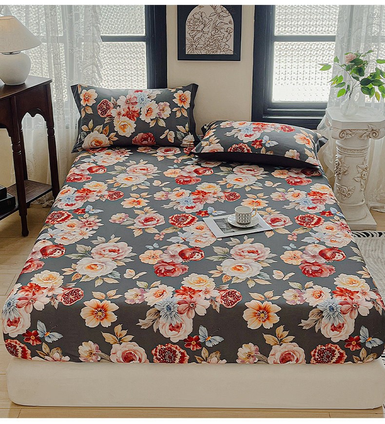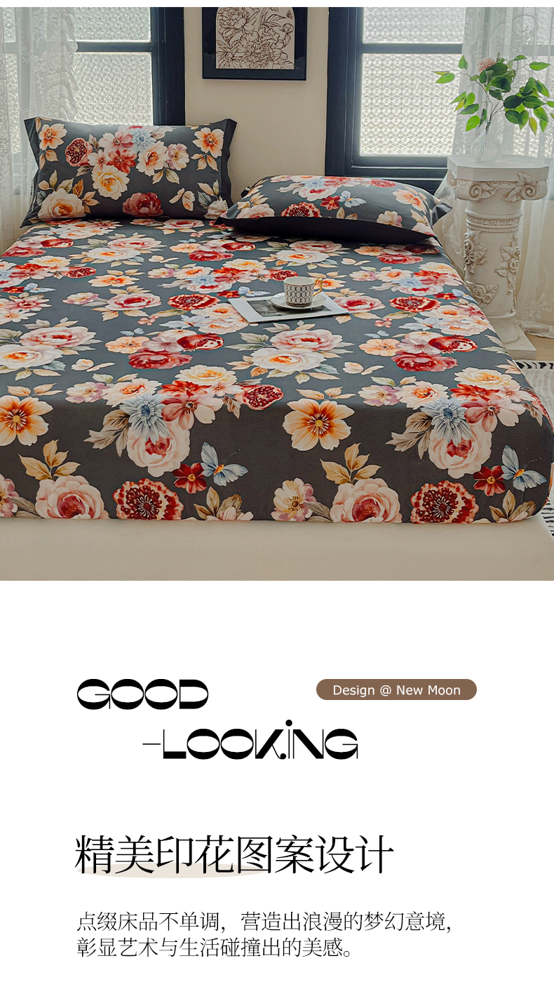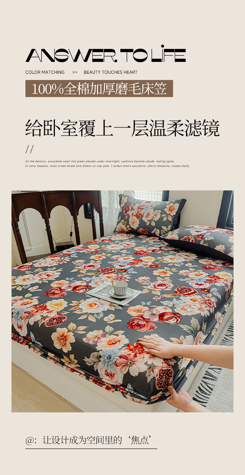 (总)慕梵家居2025新款100%全棉磨毛床笠纯棉磨毛床罩,繁花藤叙,红色玫瑰,暮秋鎏金,石榴花红,石榴花灰,硕果累累,甜梦茶语
