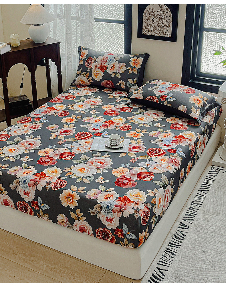 商品名称:慕梵家居2025新款100%全棉磨毛包边款床笠 石榴花灰