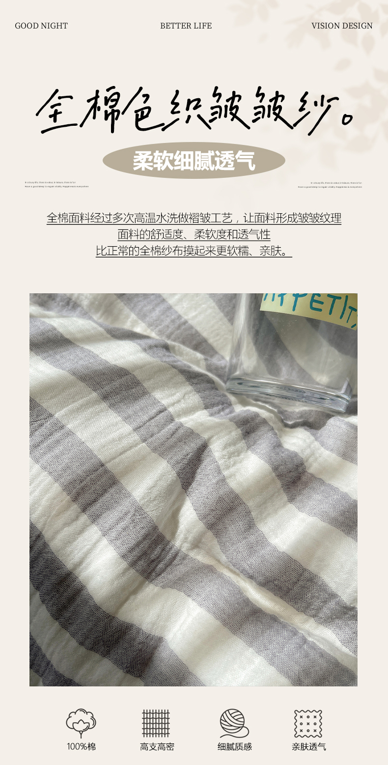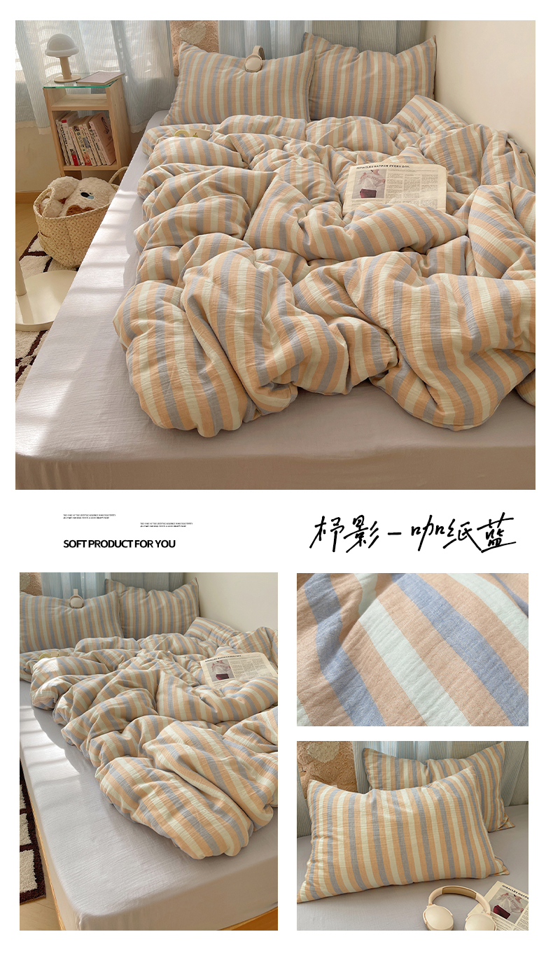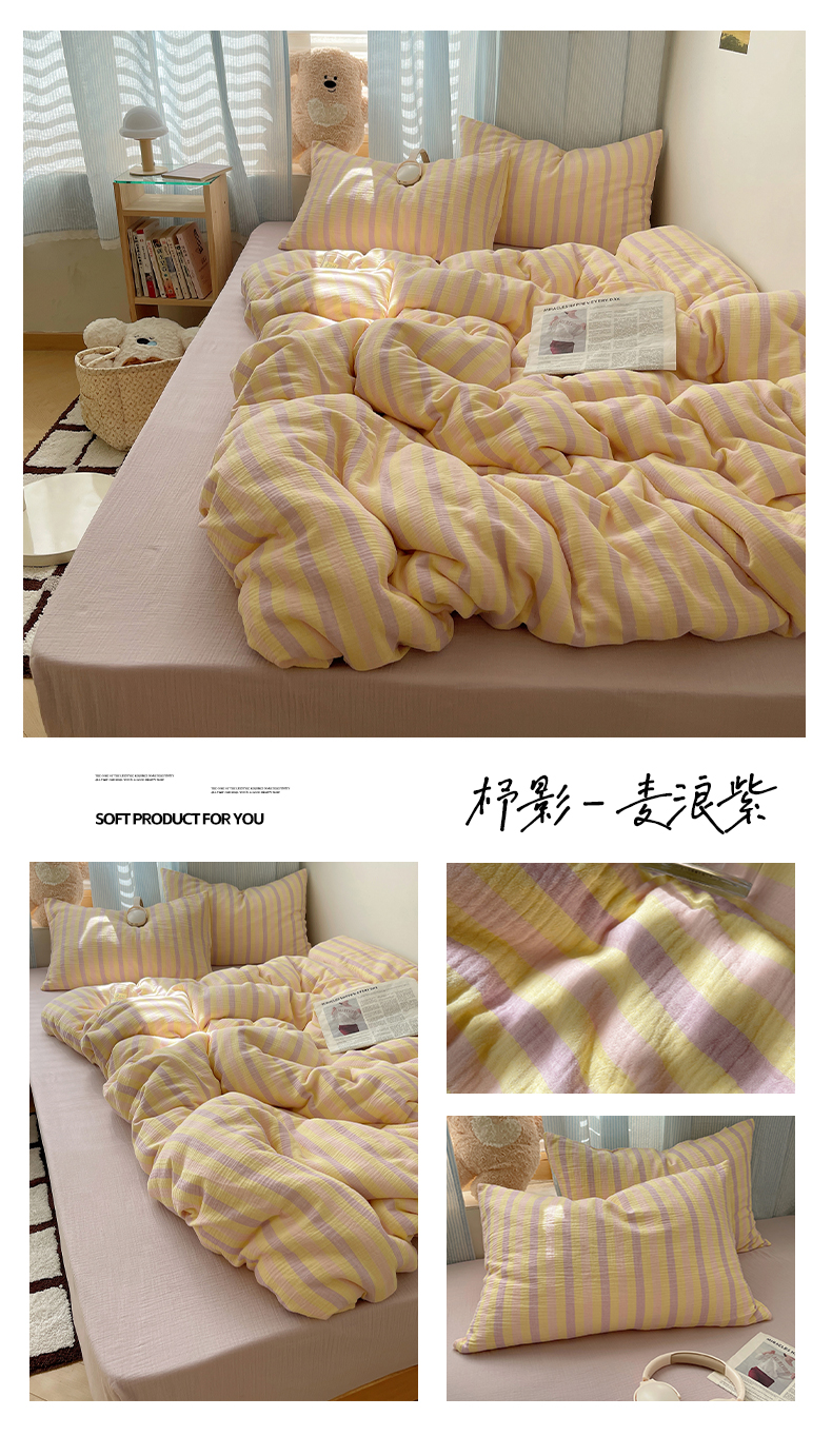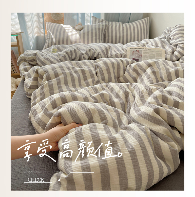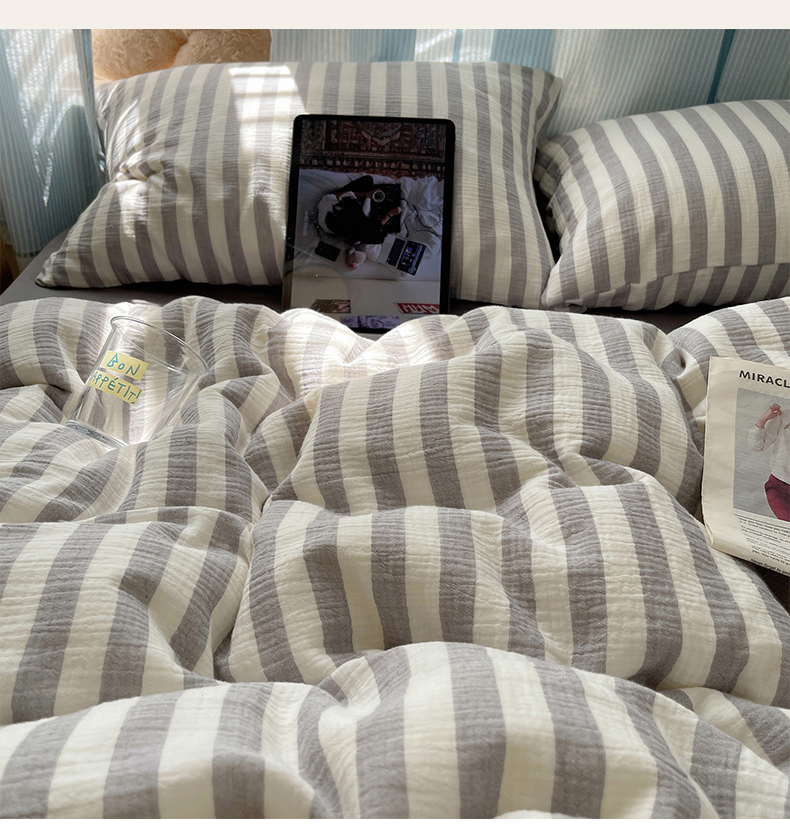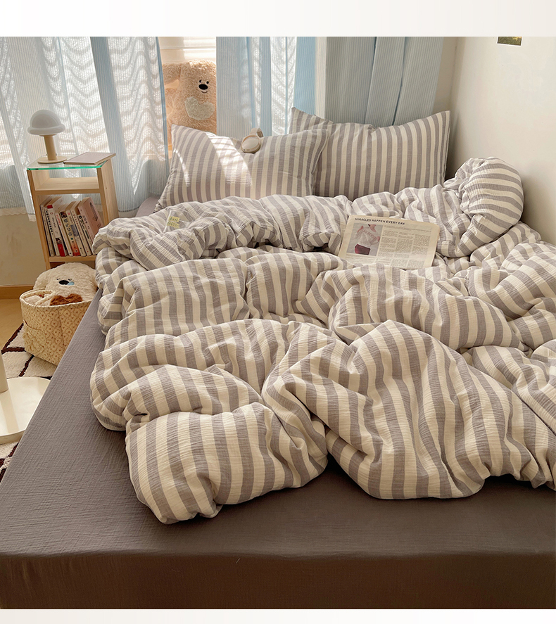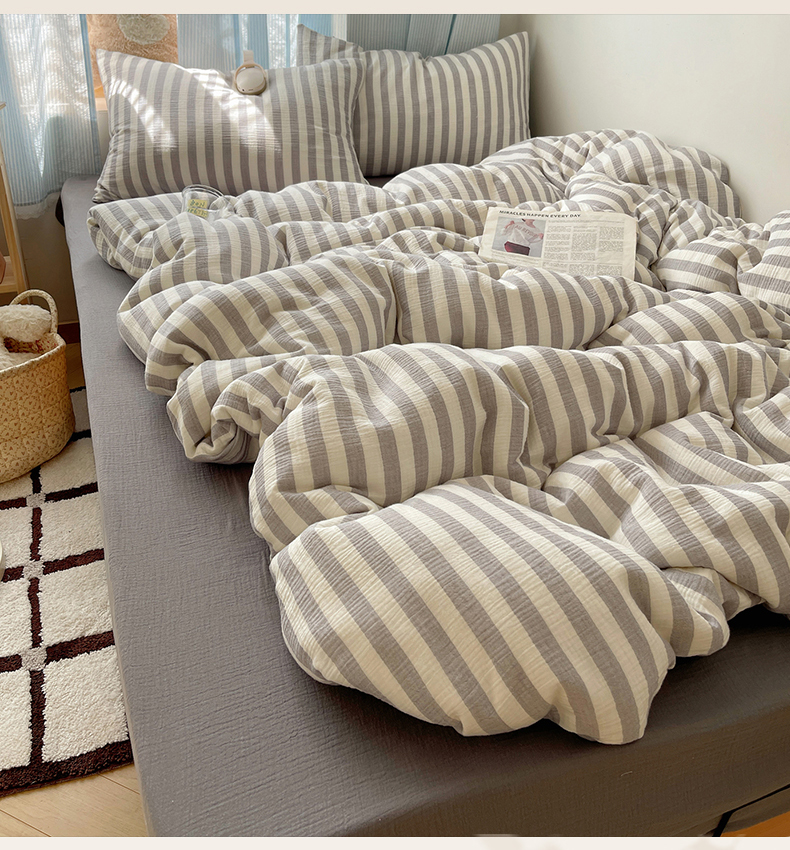 当前位置: 91家纺网 > 商品网购 > 床品套件 > 四件套 > 全棉普通四件套 > 莱茵家居 2025新款全棉纯棉皱皱纱条纹四件套-杼影 杼影-雨巷灰