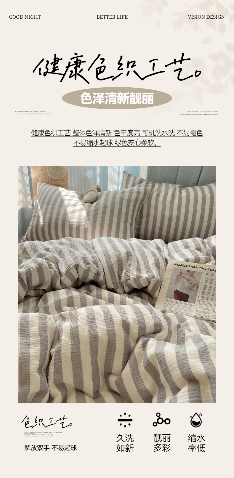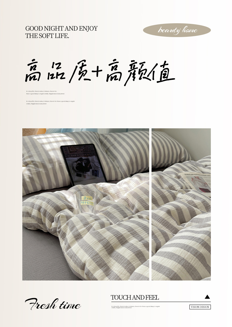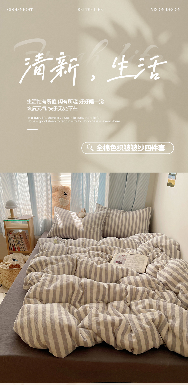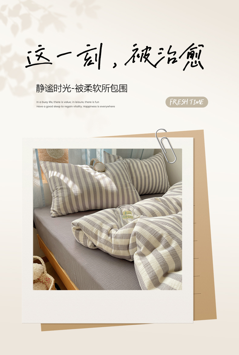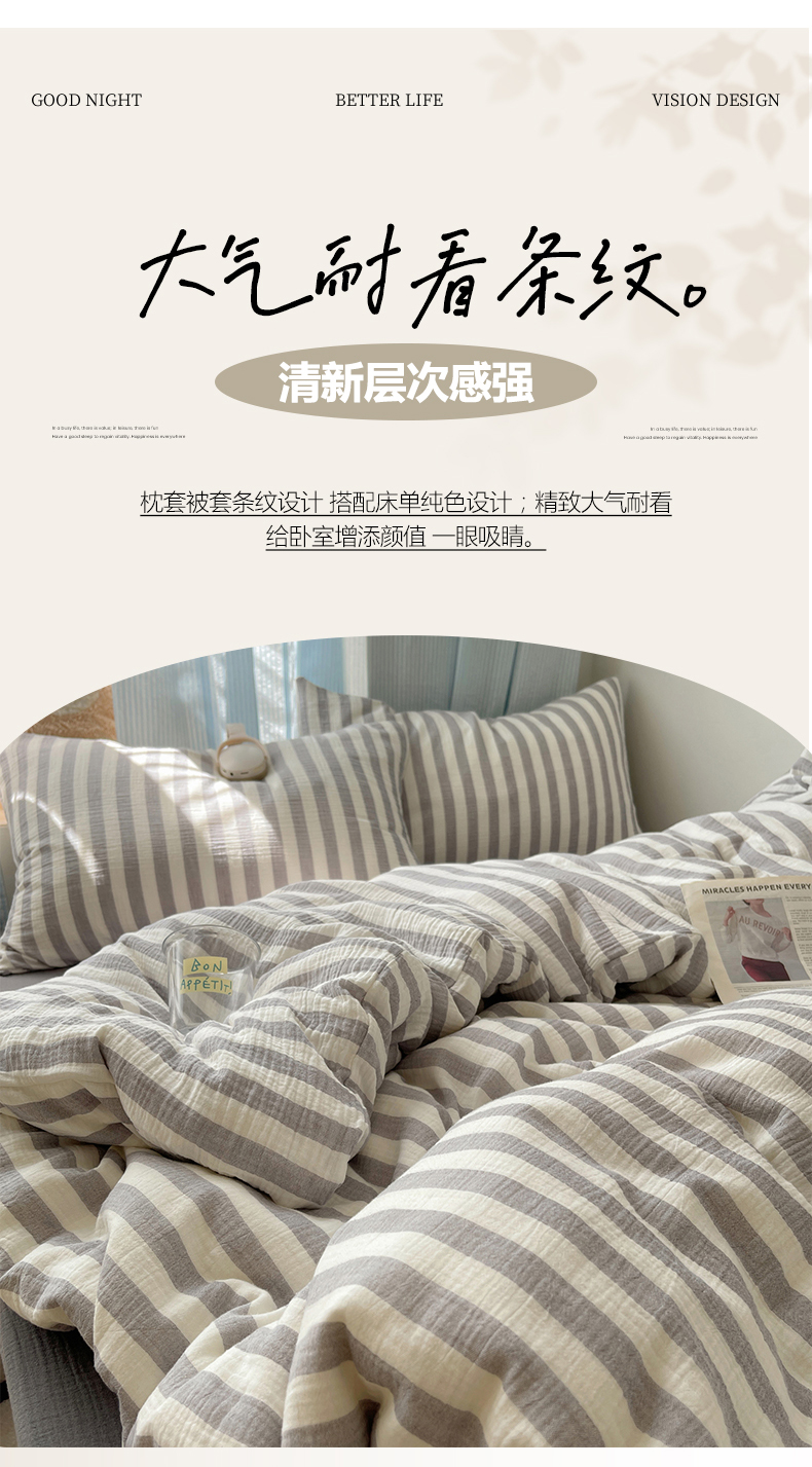 当前位置: 91家纺网 > 商品网购 > 床品套件 > 四件套 > 全棉普通四件套 > 莱茵家居 2025新款全棉纯棉皱皱纱条纹四件套-杼影 杼影-雨巷灰
