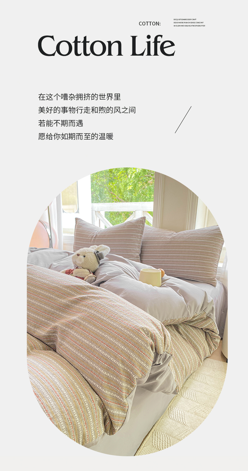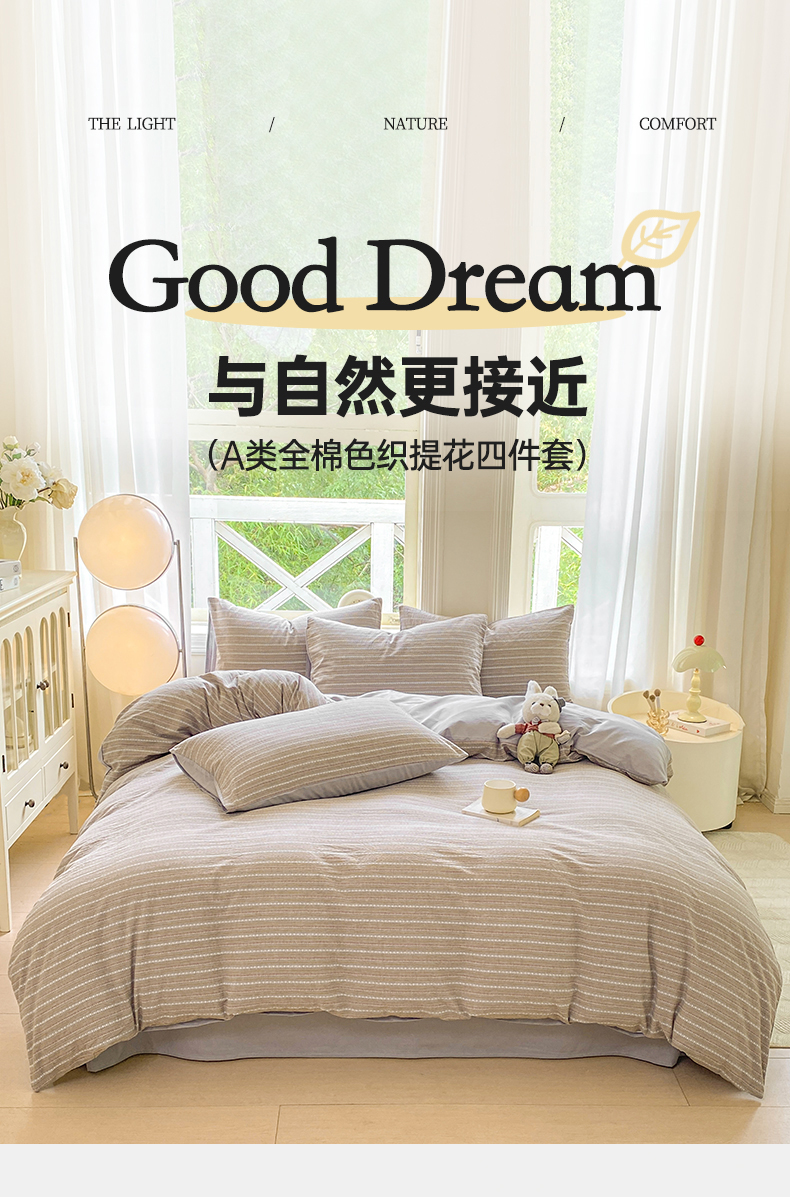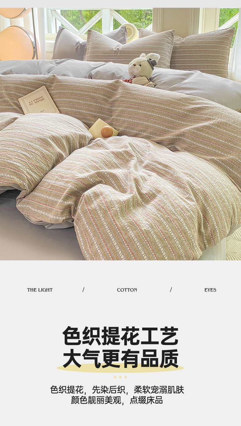 当前位置: 91家纺网 > 商品网购 > 床品套件 > 四件套 > 色织四件套 > 灰鲸 2025新款A类全棉纯棉色织提花四件套 美拉-灰