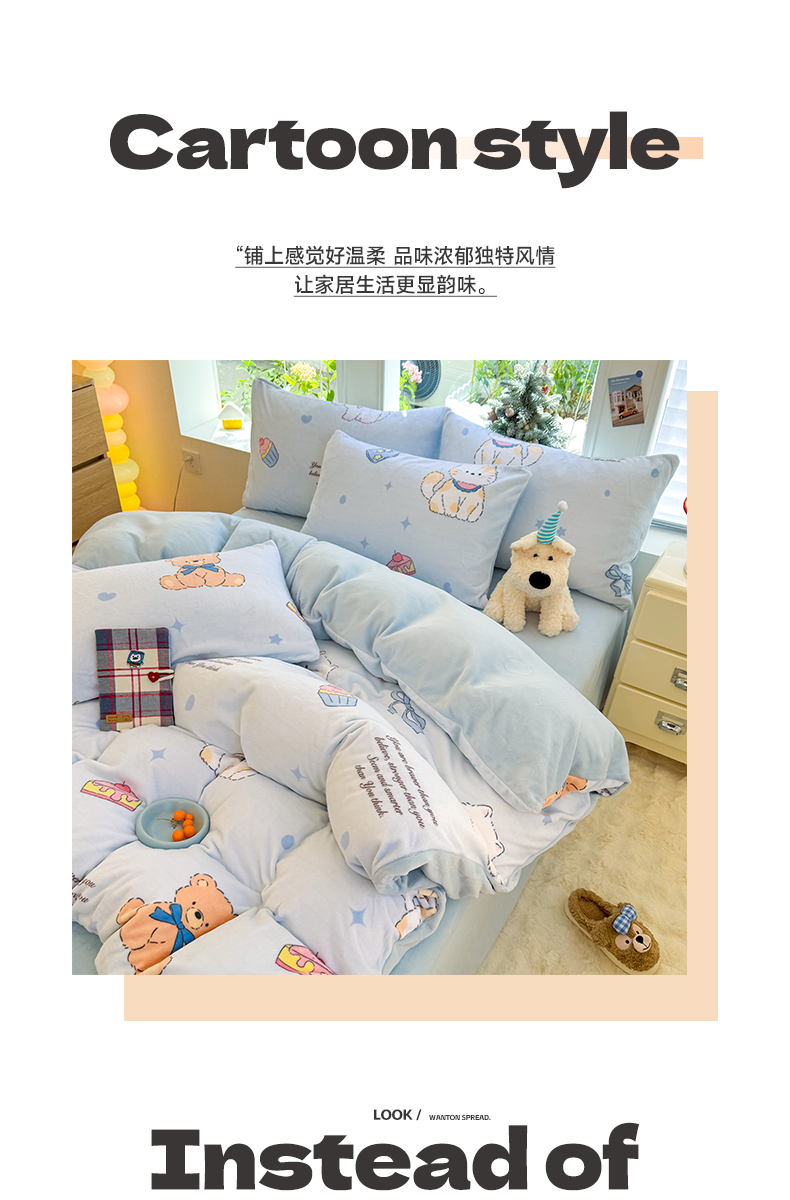 商品名称:酱子 2025新款200克高克重印花牛奶绒四件套 碎花猫猫