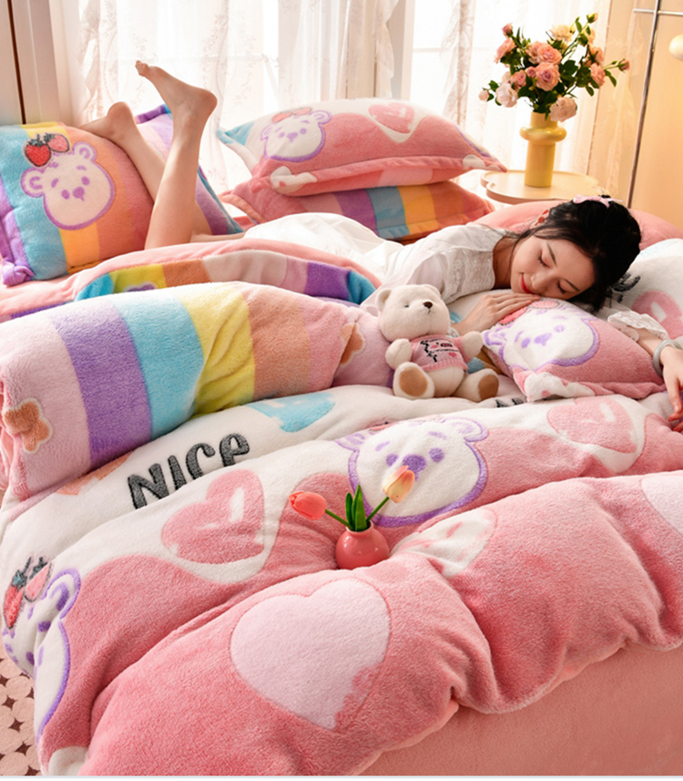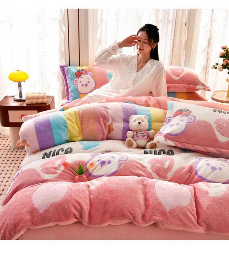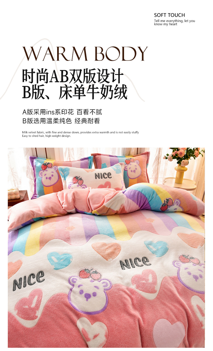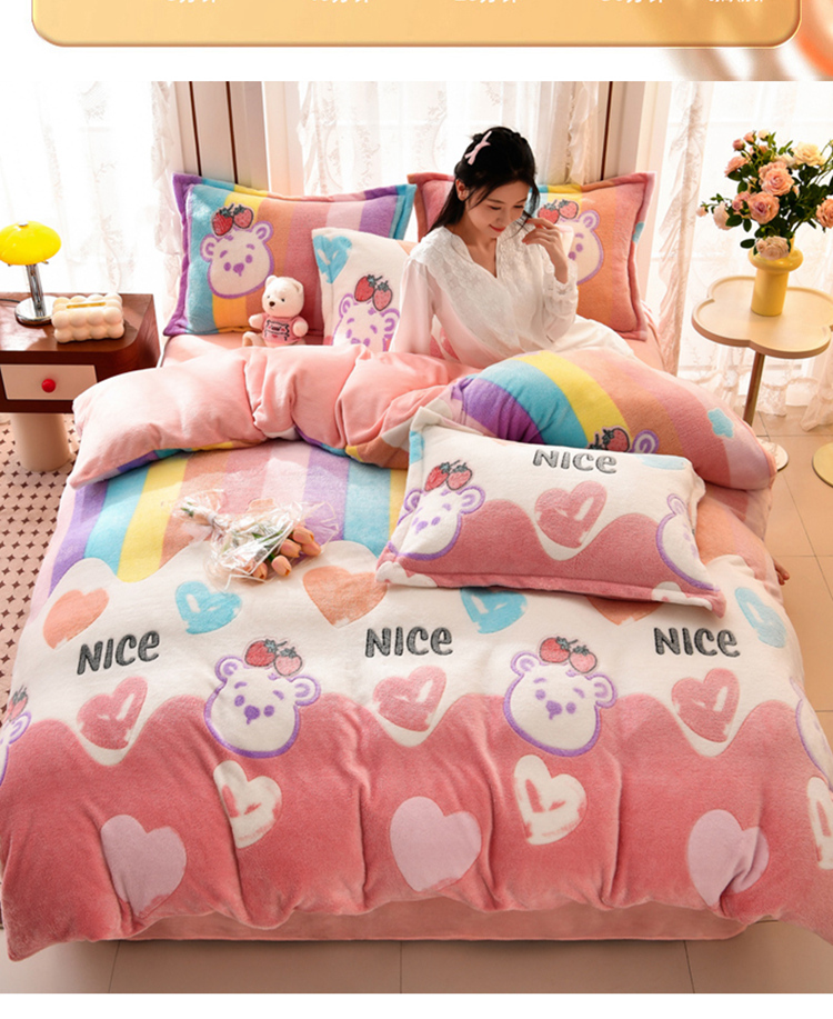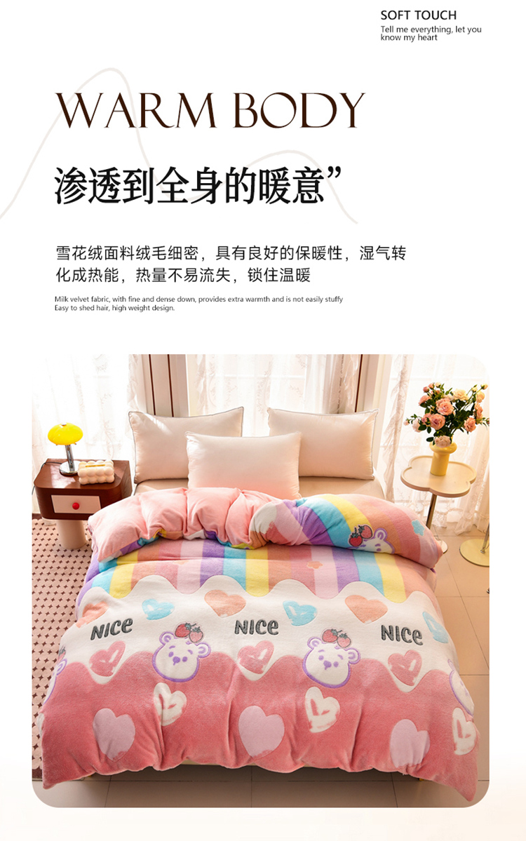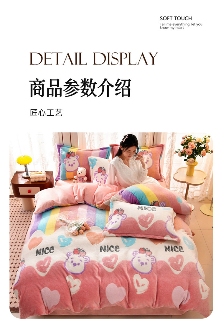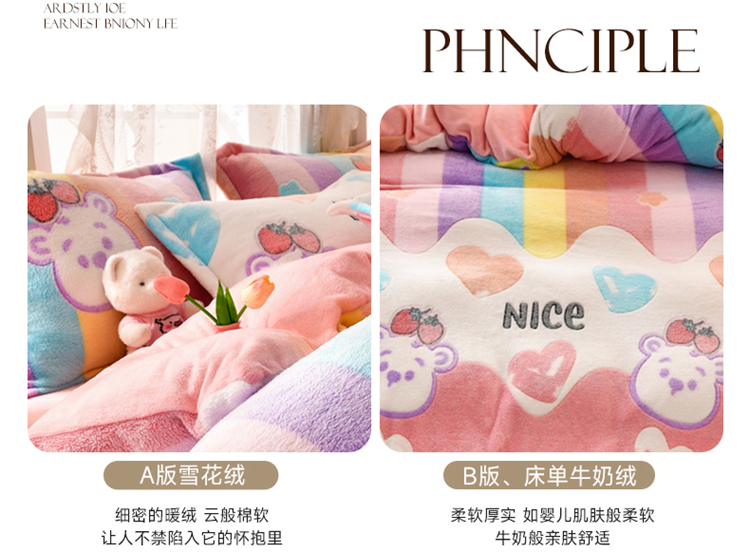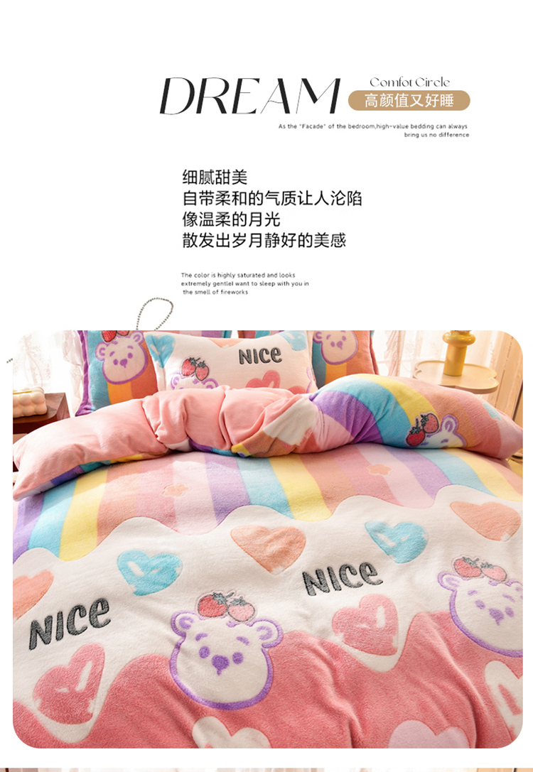 当前位置: 91家纺网 > 商品网购 > 床品套件 > 四件套 > 其它四件套 > 牵梦萦 2025新款雪花绒小清新印花四件套 彩虹爱心