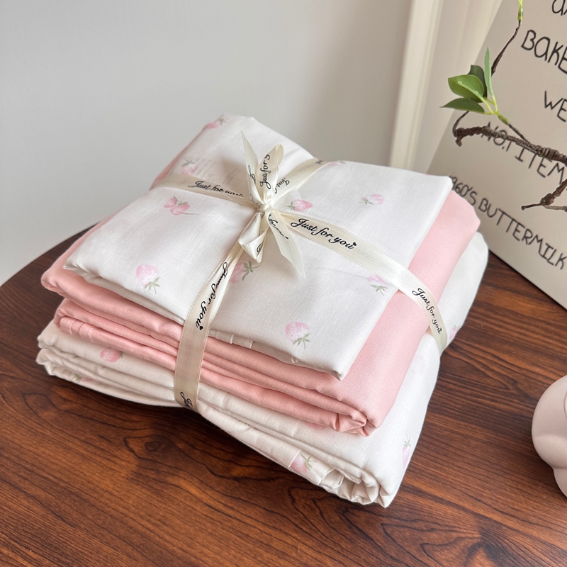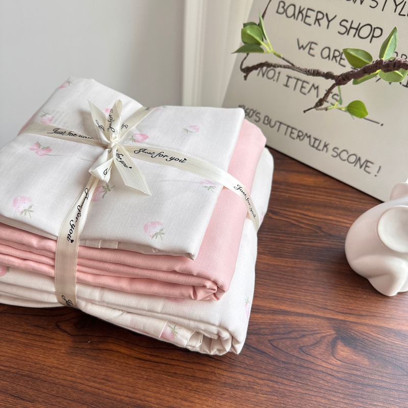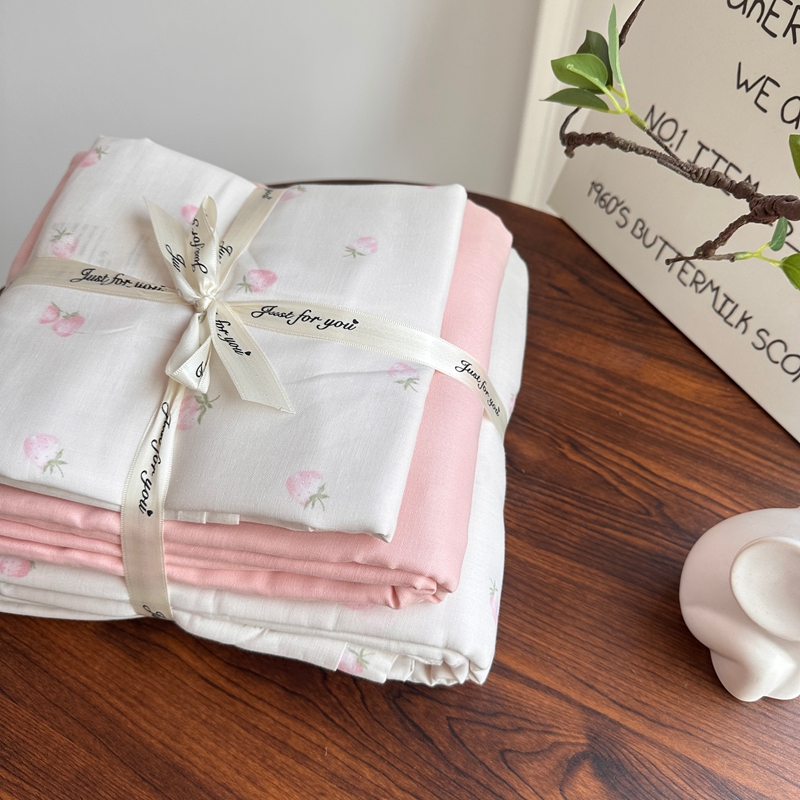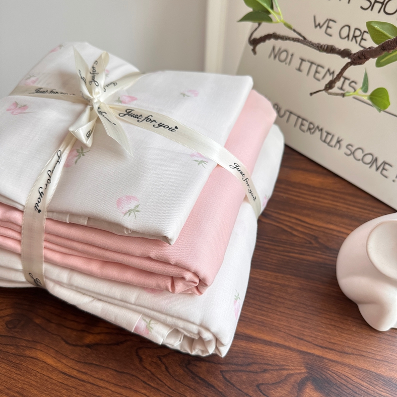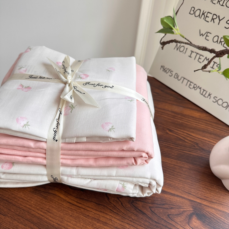 当前位置: 91家纺网 > 商品网购 > 床品套件 > 四件套 > 双层纱四件套 > 爱思佳 2024新款A类母婴全棉双层纱印花四件套直播热卖系列三 叠拍图 奶油草莓