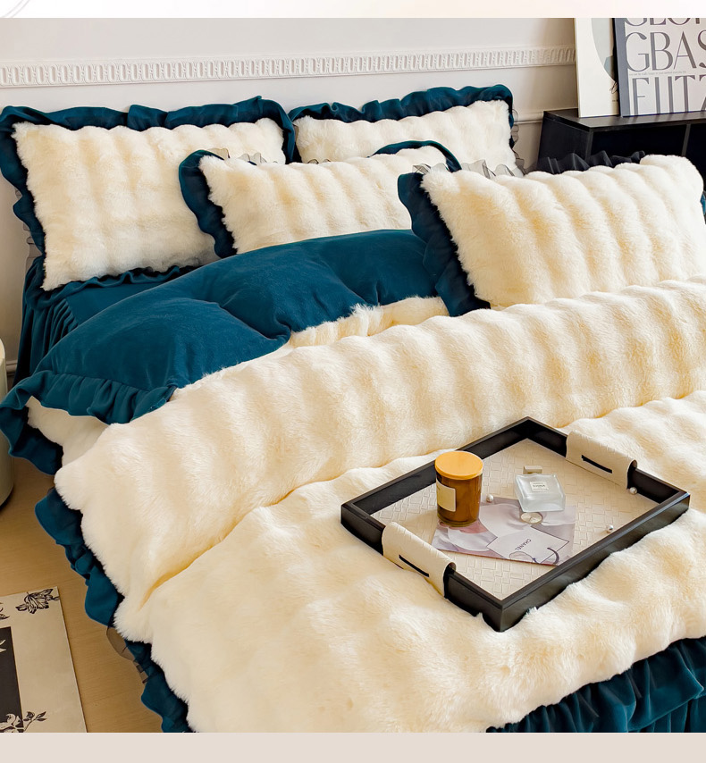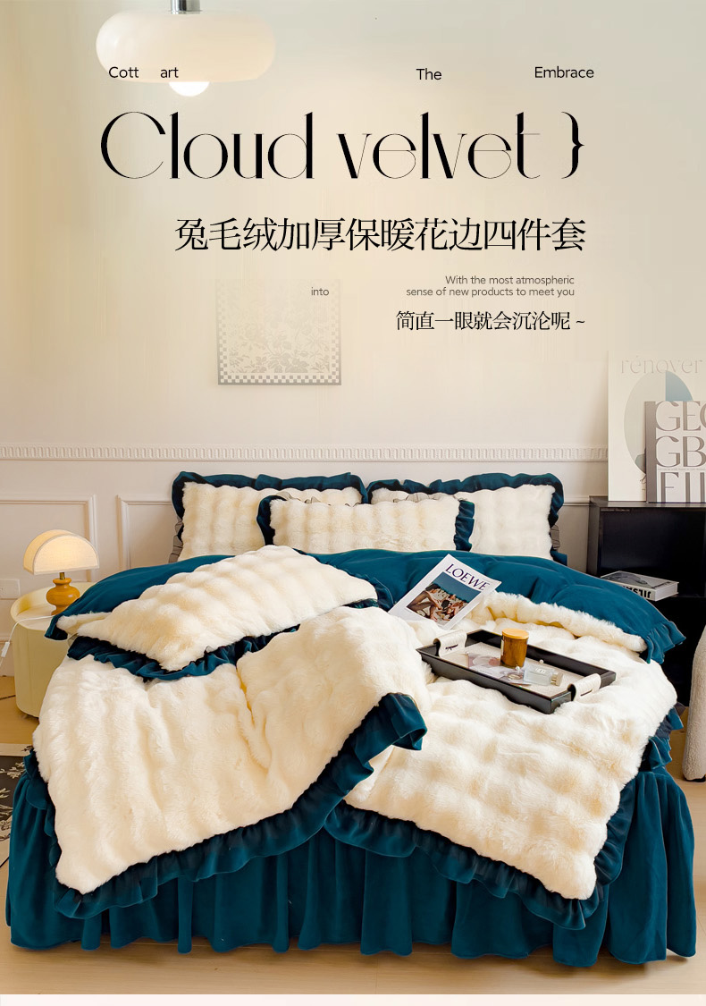 当前位置: 91家纺网 > 商品网购 > 床品套件 > 四件套 > 牛奶绒四件套 > 睡美人 2025韩版兔兔绒牛奶绒床裙床单床笠款公主蕾丝四件套 兔兔绒-孔雀绿