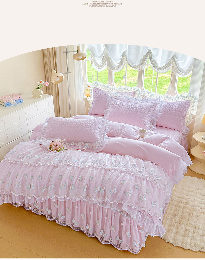 当前位置: 91家纺网 > 商品网购 > 床品套件 > 四件套 > 其它四件套 > 罗艺轩 2025新款全棉纯棉斜纹工艺床裙四件套 蓝蝴蝶-紫色