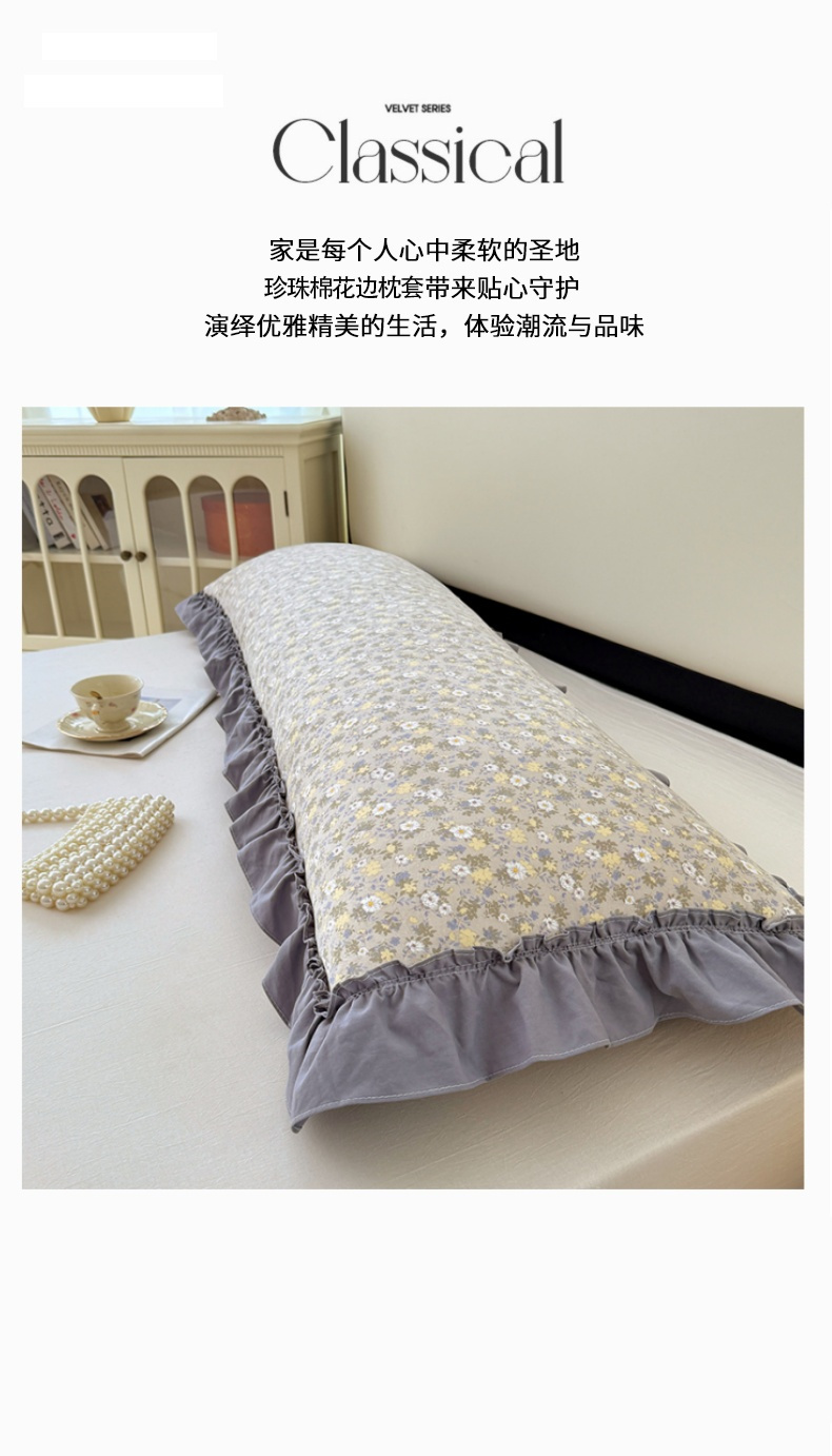 商品名称:梦舒羽 2025新款水洗珍珠棉花边枕套加长双人情侣1.8米枕芯内胆套1.5m枕头套 花知晓