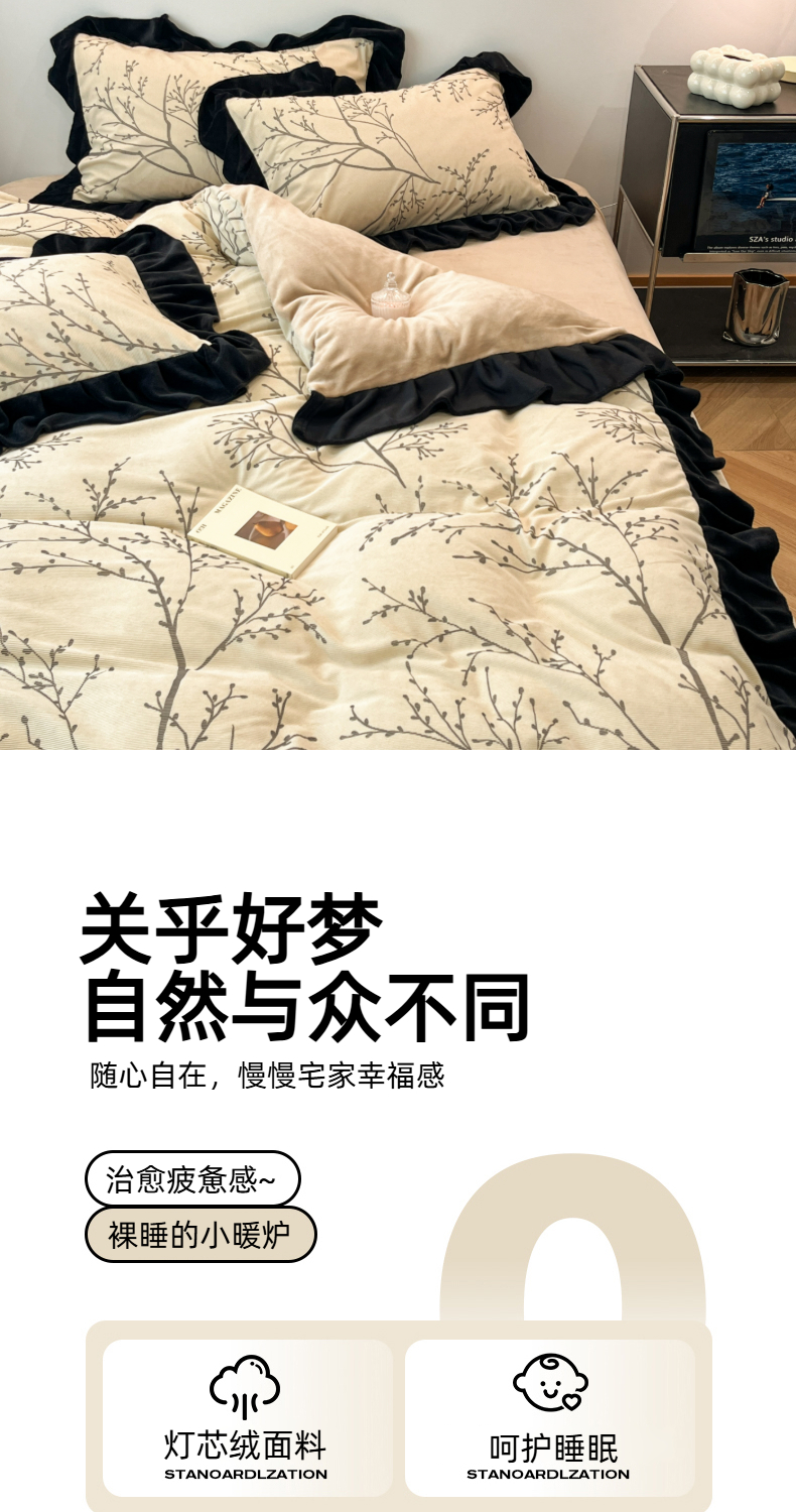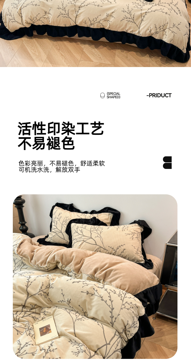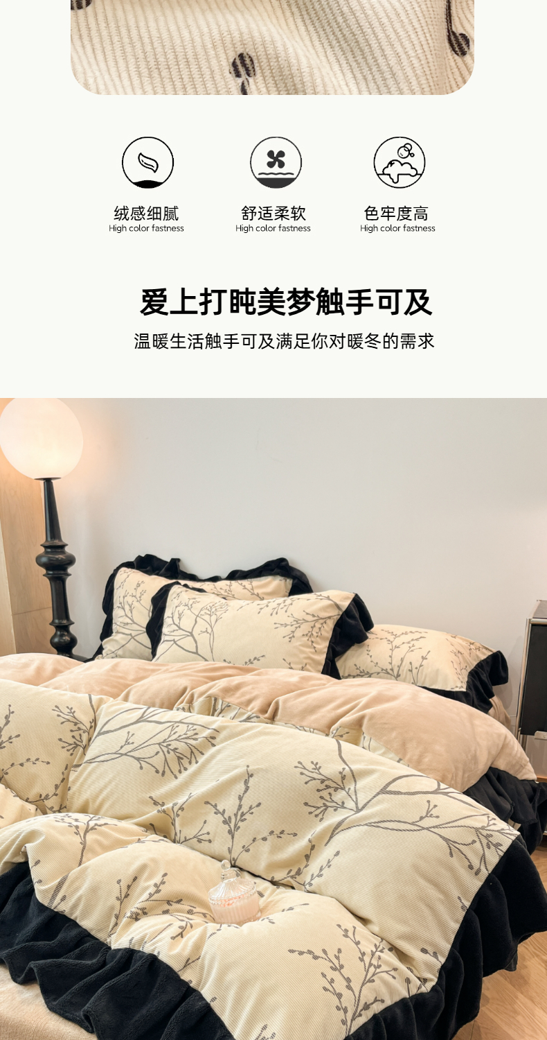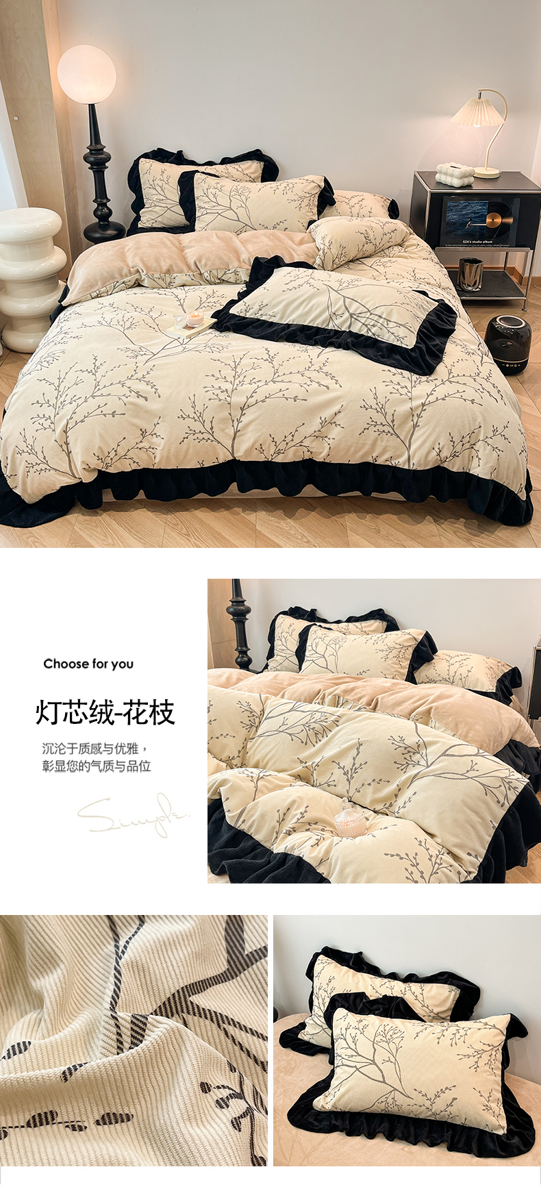 当前位置: 91家纺网 > 商品网购 > 床品套件 > 四件套 > 其它四件套 > 金爱家 2025新款赫本风灯芯绒-花边款四件套 灯芯绒-花枝
