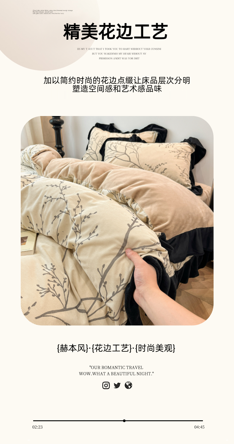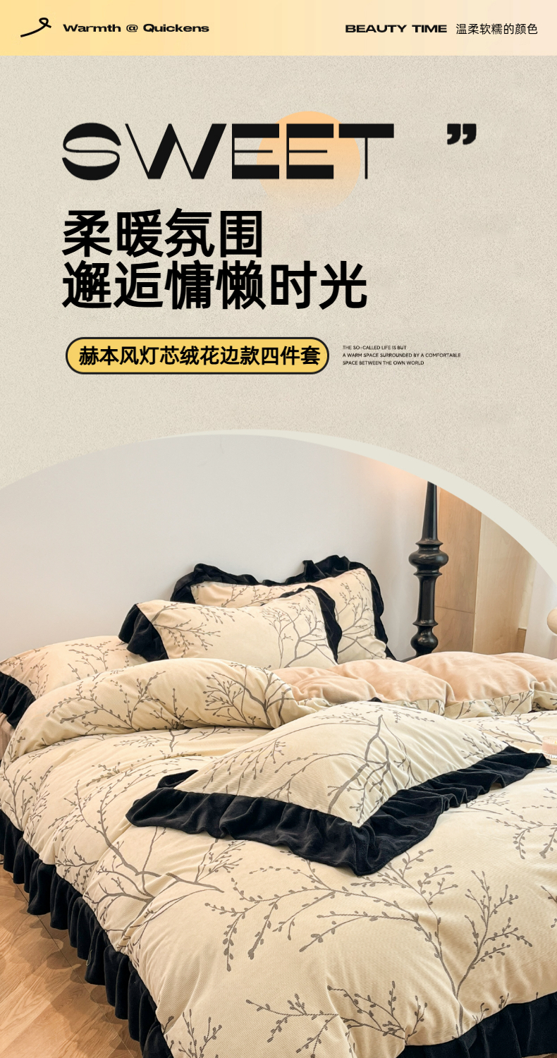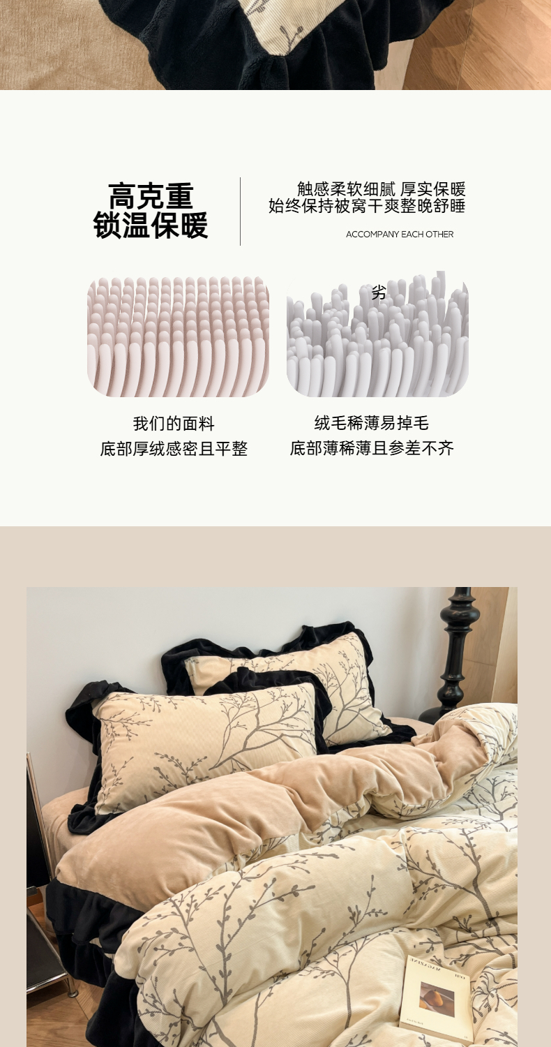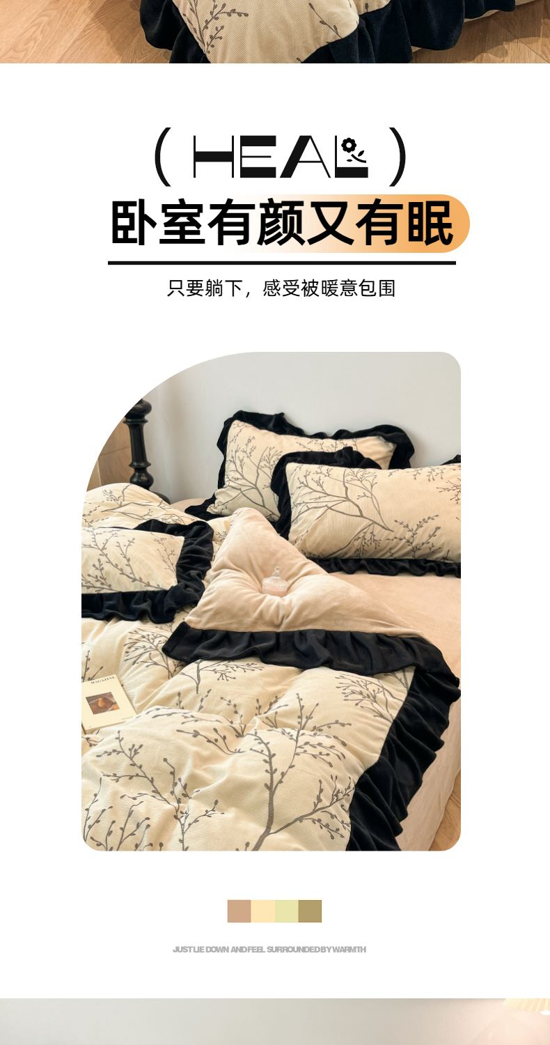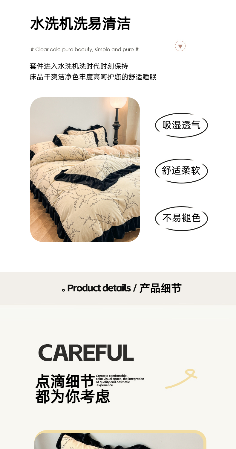 当前位置: 91家纺网 > 商品网购 > 床品套件 > 四件套 > 其它四件套 > 金爱家 2025新款赫本风灯芯绒-花边款四件套 灯芯绒-花枝