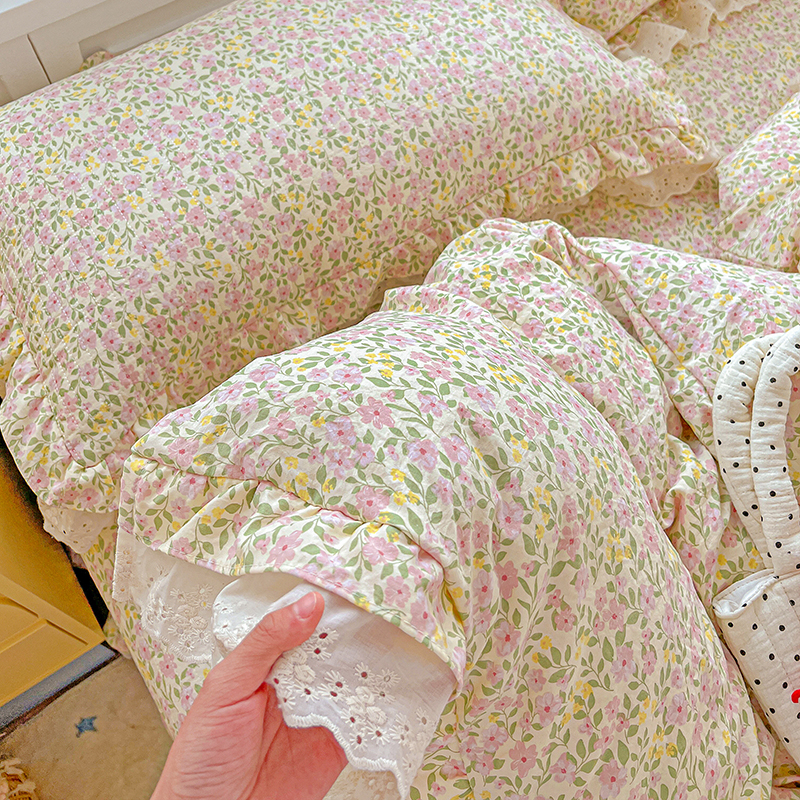 商品名称:梦莱斯 2025新款田园碎花纯棉花边四件套-床盖款 采薇