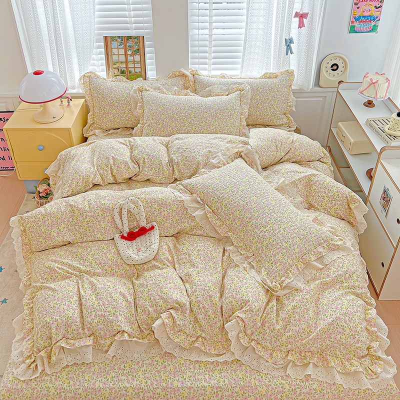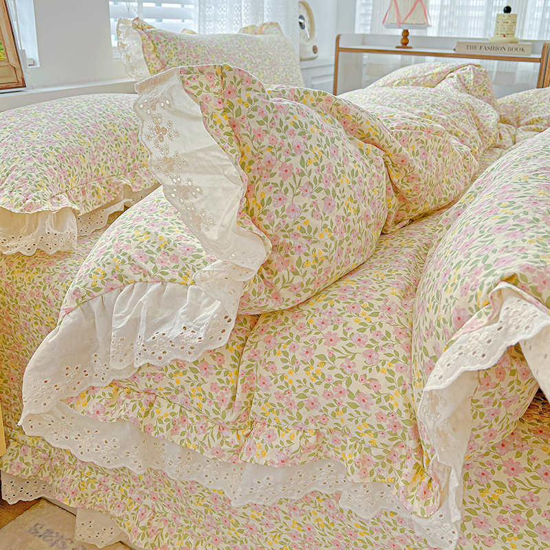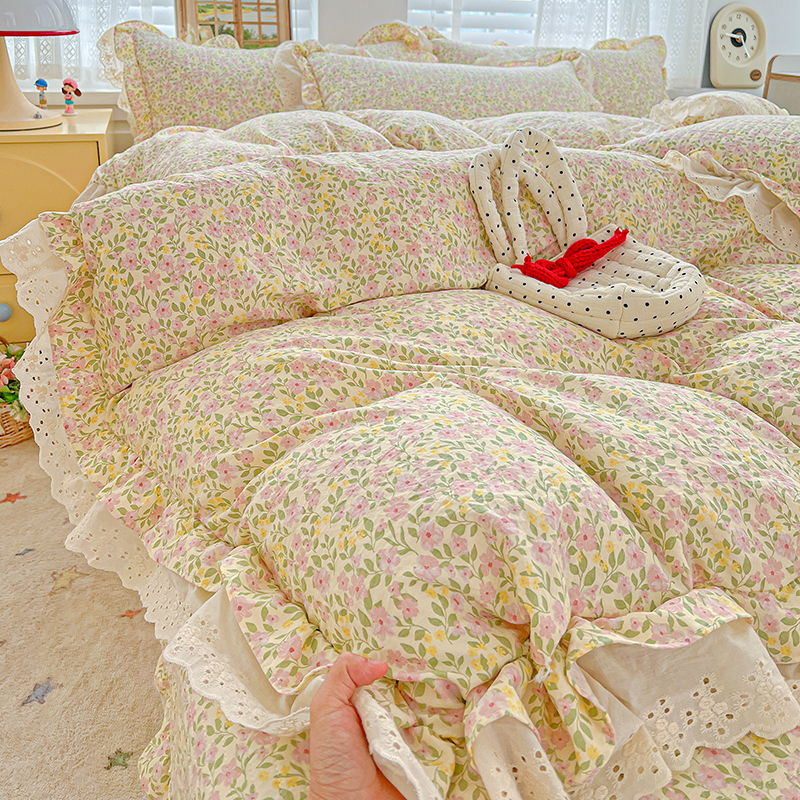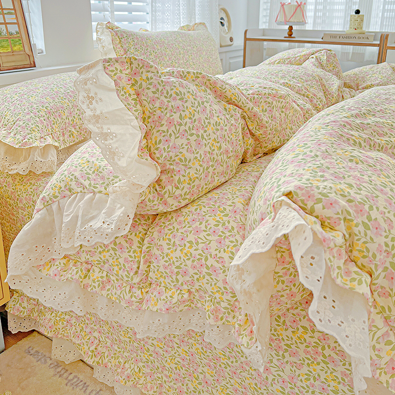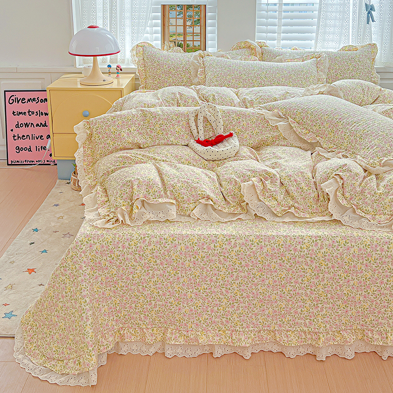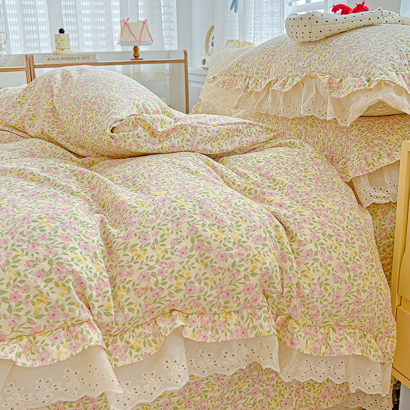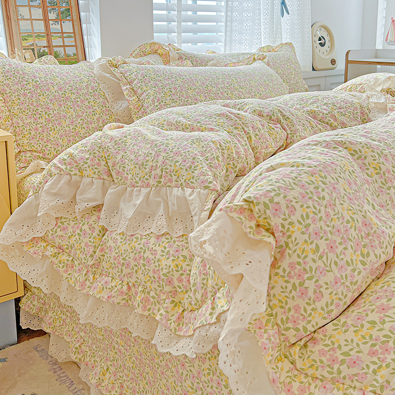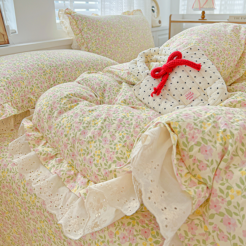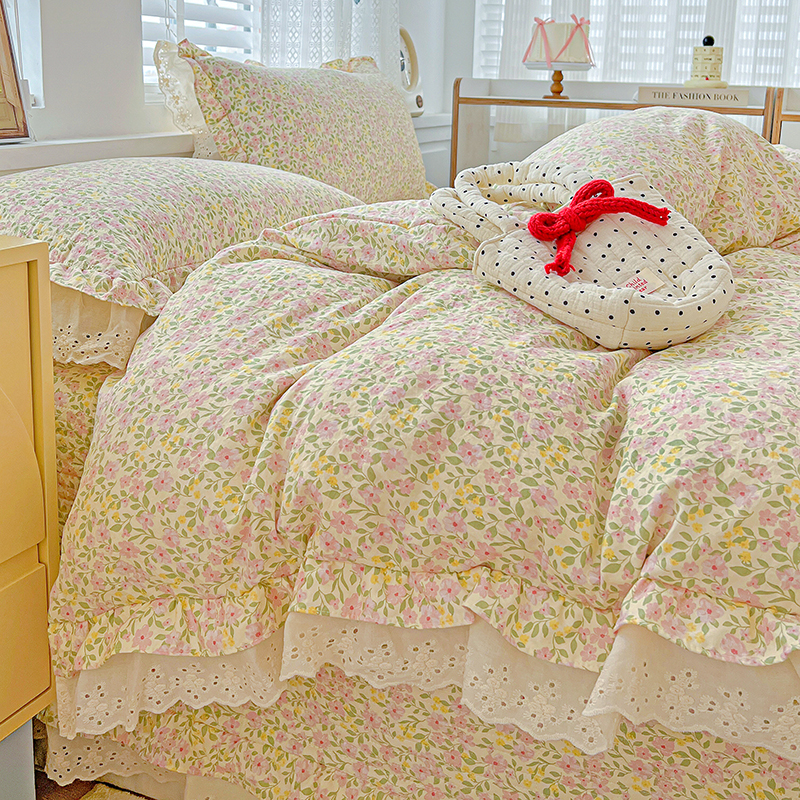 梦莱斯 2025新款田园碎花纯棉花边四件套-床盖款 采薇