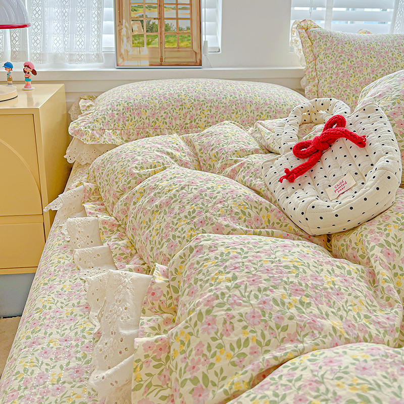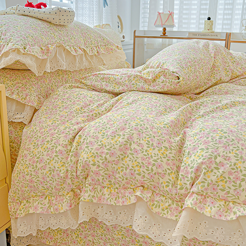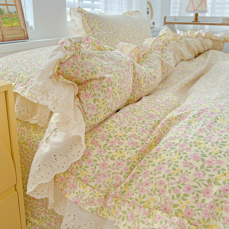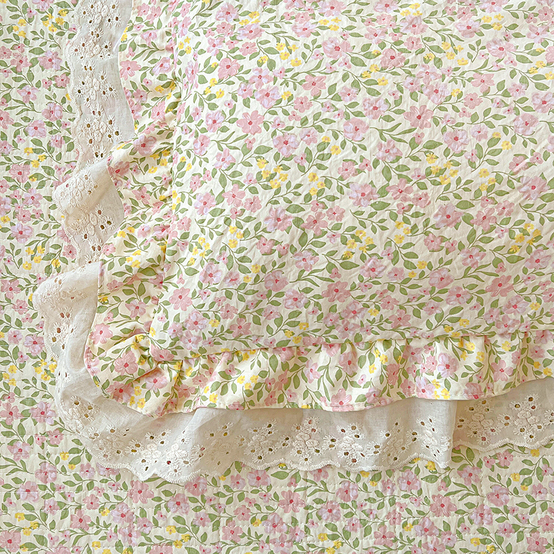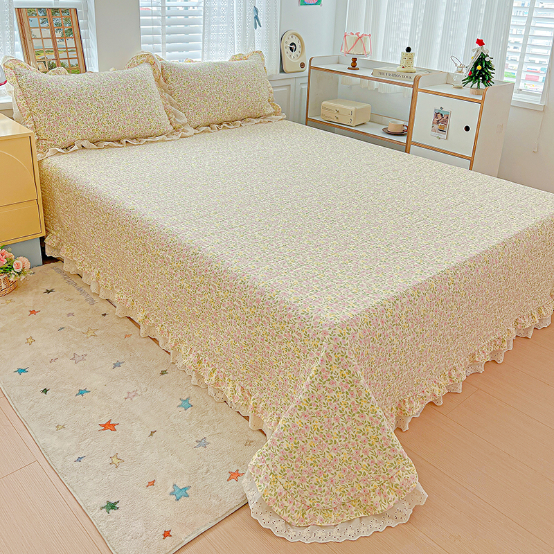 (总)梦莱斯 2025新款田园碎花纯棉花边四件套-床盖款,采薇,花精灵,花开半夏,莱茵,恋爱季,绿叶仙踪,糜花似锦,糜花熙悦,秘境花园
