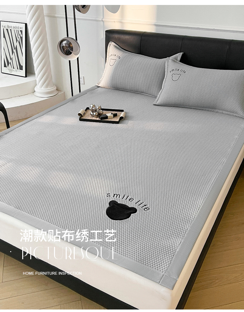 当前位置: 91家纺网 > 商品网购 > 床上用品 > 凉席 > 其他凉席 > 小叮当家纺仓储工厂店 2025新款冰豆豆贴布绣八宝熊系列绑带床席款(场景一) 绑带款-八宝熊-灰