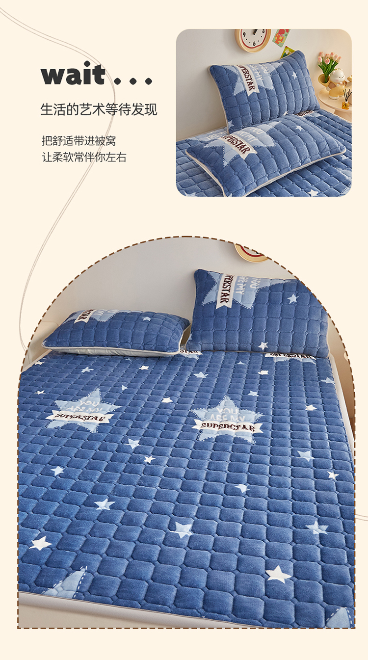 • 91家纺网 家纺一手货源 找家纺 (总)奇丝雅 2025新款A类牛奶绒泡泡绒床褥床垫床盖兔毛绒家用学生宿舍上下铺寝室褥子软垫床护垫夹棉(大床)场景二,星星猫咪,月亮湾,趴趴狗,繁星,爱心咖,樱桃猫咪,幻影灰,暖绒蓝,清新绿,柔和蓝