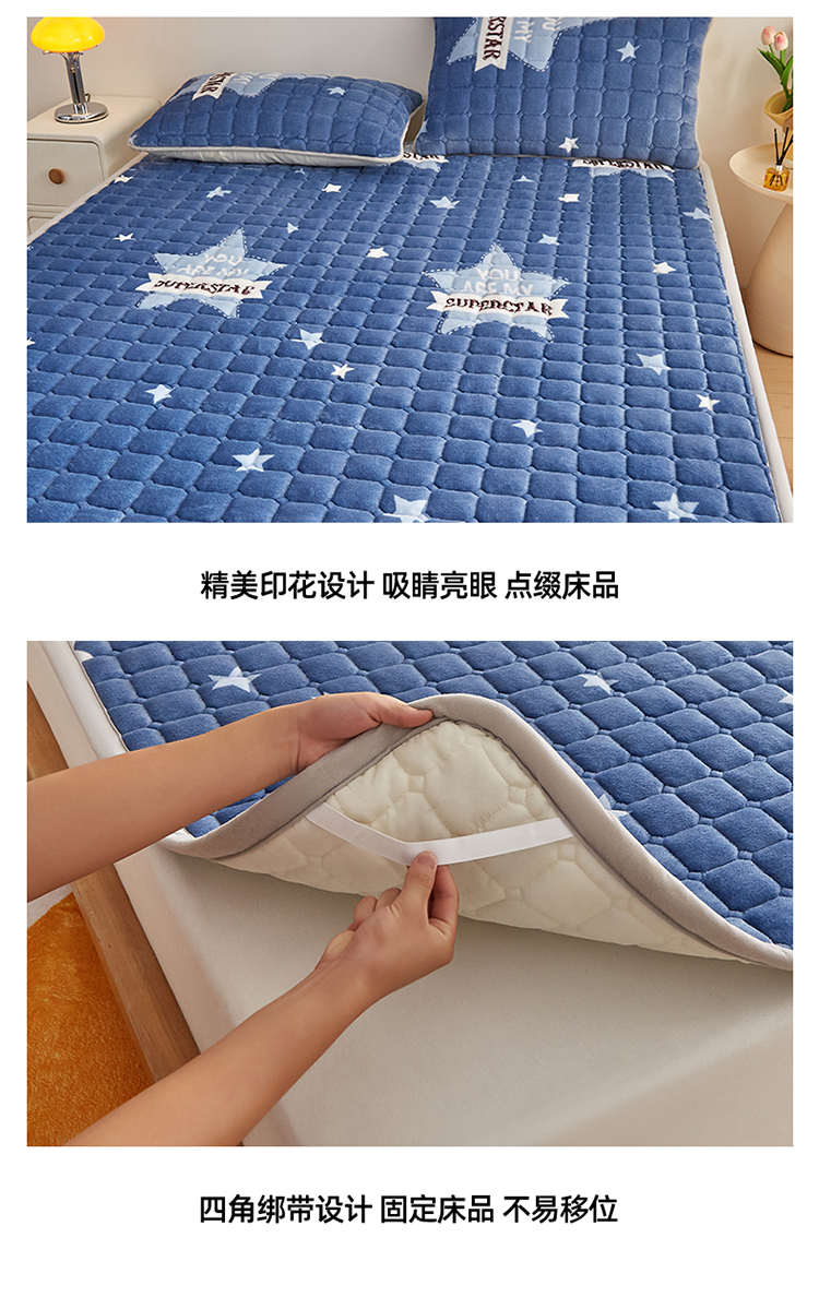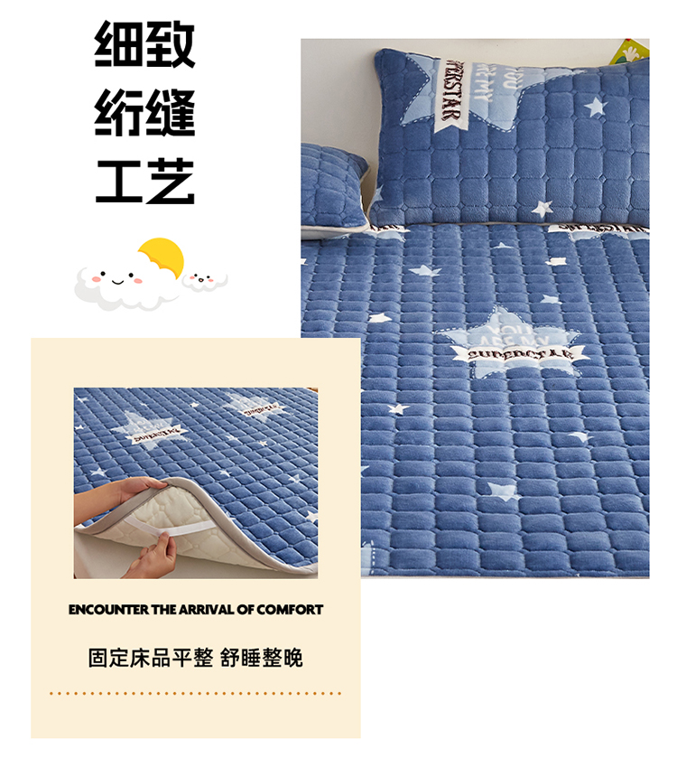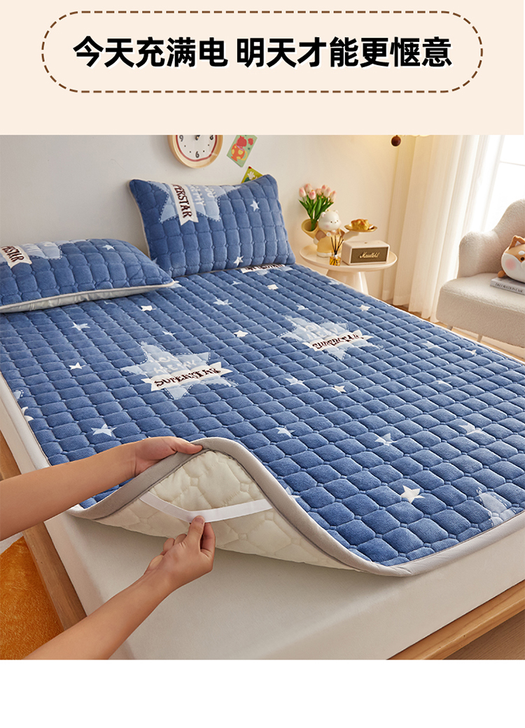 • 91家纺网 家纺一手货源 找家纺 (总)奇丝雅 2025新款A类牛奶绒泡泡绒床褥床垫床盖兔毛绒家用学生宿舍上下铺寝室褥子软垫床护垫夹棉(大床)场景二,星星猫咪,月亮湾,趴趴狗,繁星,爱心咖,樱桃猫咪,幻影灰,暖绒蓝,清新绿,柔和蓝