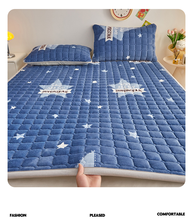 (总)奇丝雅 2025新款A类牛奶绒泡泡绒床褥床垫床盖兔毛绒家用学生宿舍上下铺寝室褥子软垫床护垫夹棉(大床)场景二,星星猫咪,月亮湾,趴趴狗,繁星,爱心咖,樱桃猫咪,幻影灰,暖绒蓝,清新绿,柔和蓝