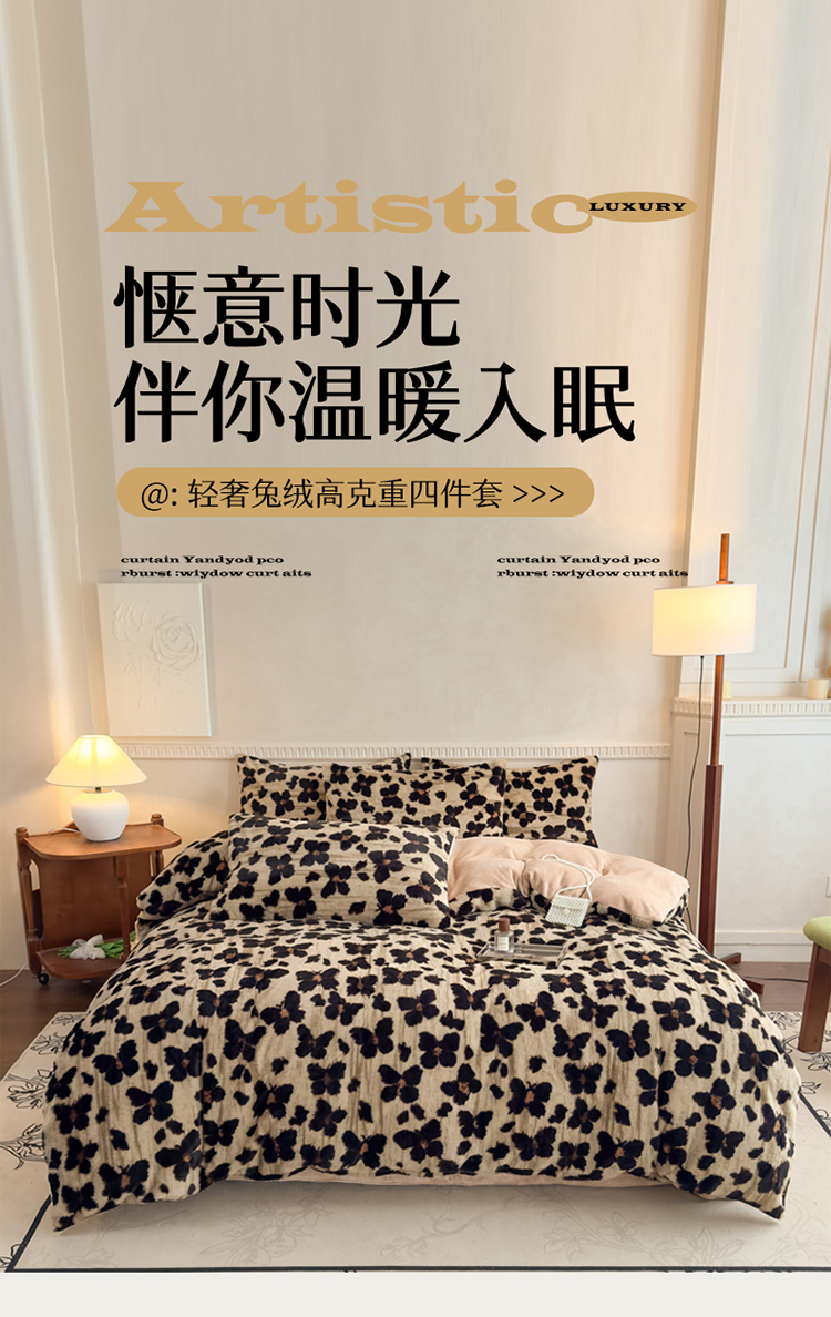 (总)橘子家 2025新款轻奢兔绒高克重四件套,豹纹-咖,彼岸花开,彼岸花开-灰,古奈,蝴蝶,华尔兹,简爱,锦瑟,蔓蝶,蔓蝶-灰,玫瑰花,绮梦,森与-灰,索菲庄园,向阳花开-黄,向阳花开-紫,燕尾花,燕尾花-灰