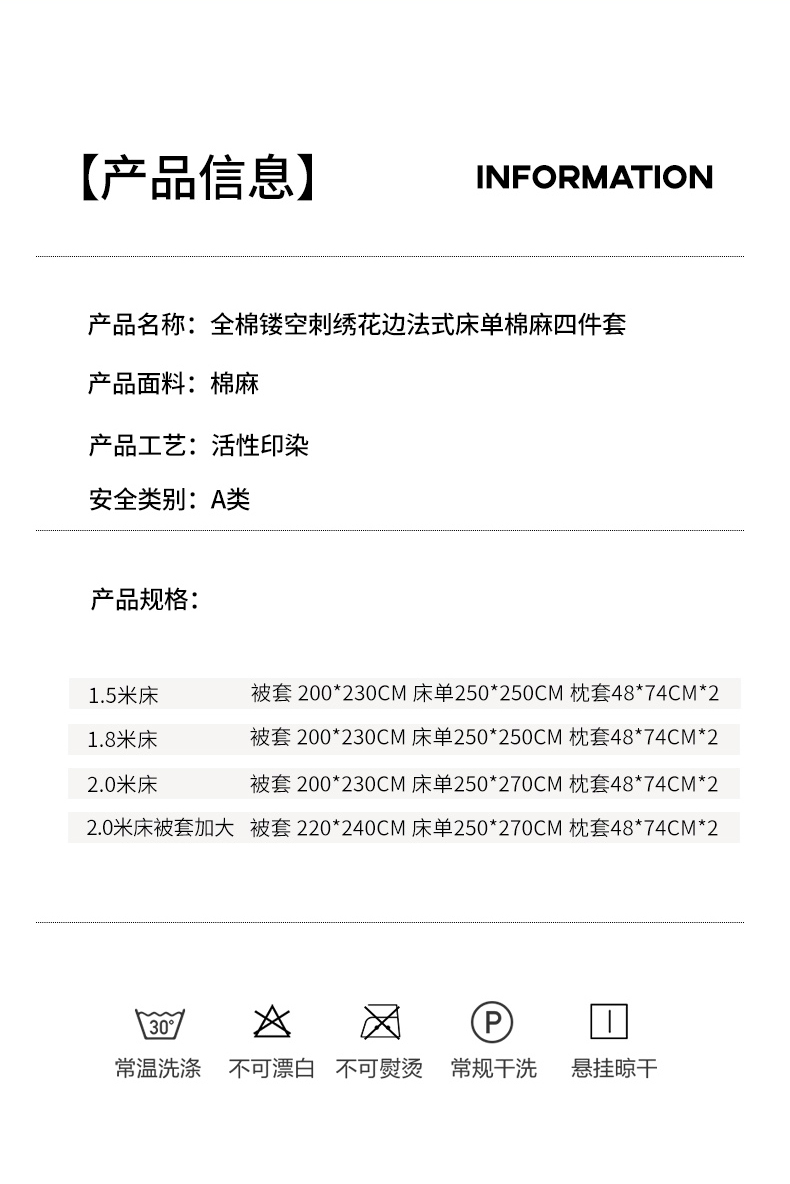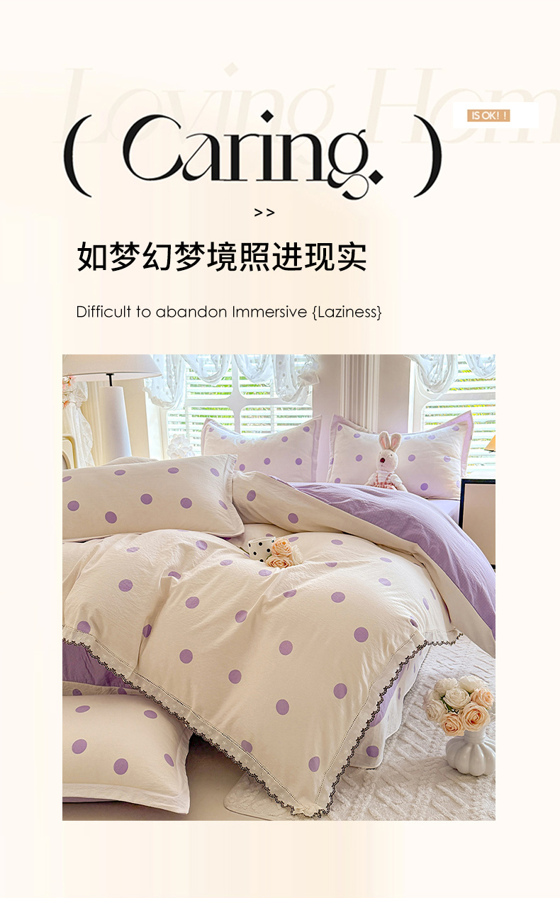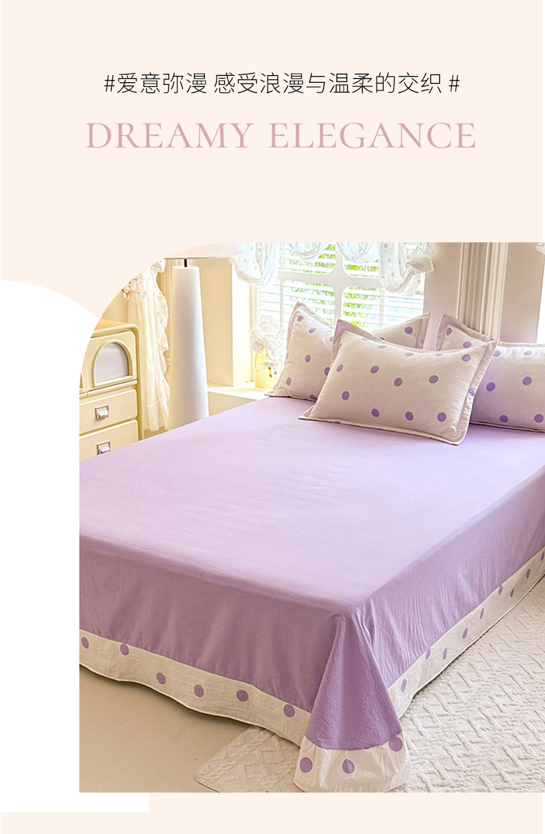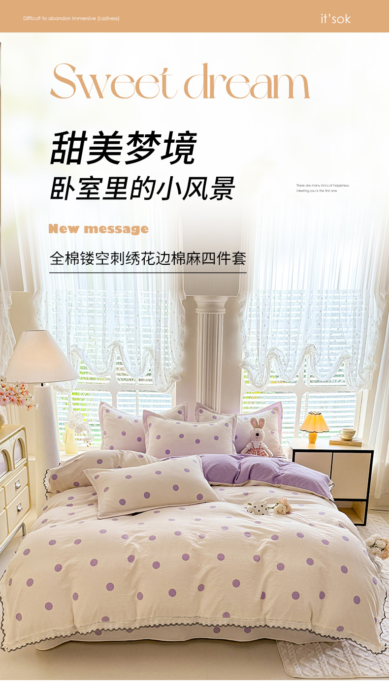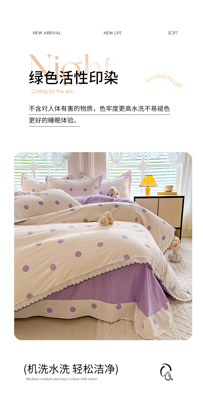 商品名称:韩约家纺 2025新款1全棉镂空双色刺绣花边床单款加厚棉麻四件套 波波紫