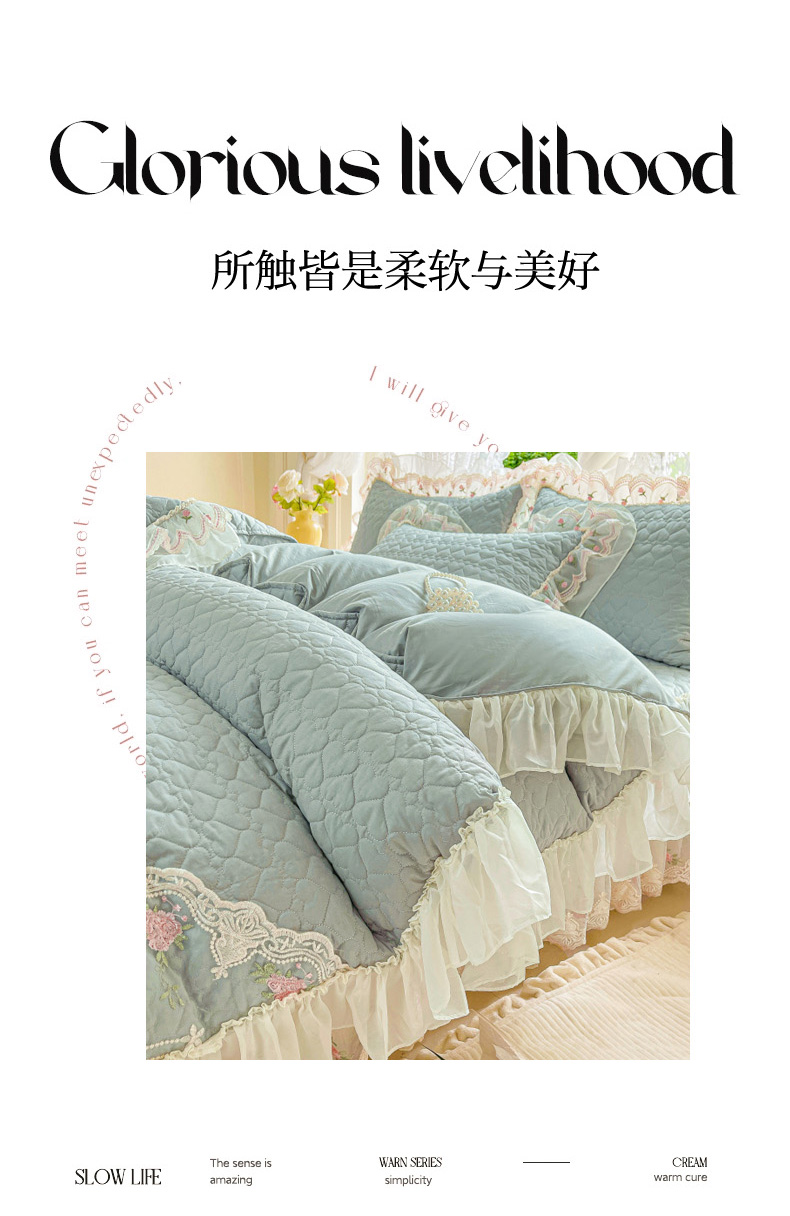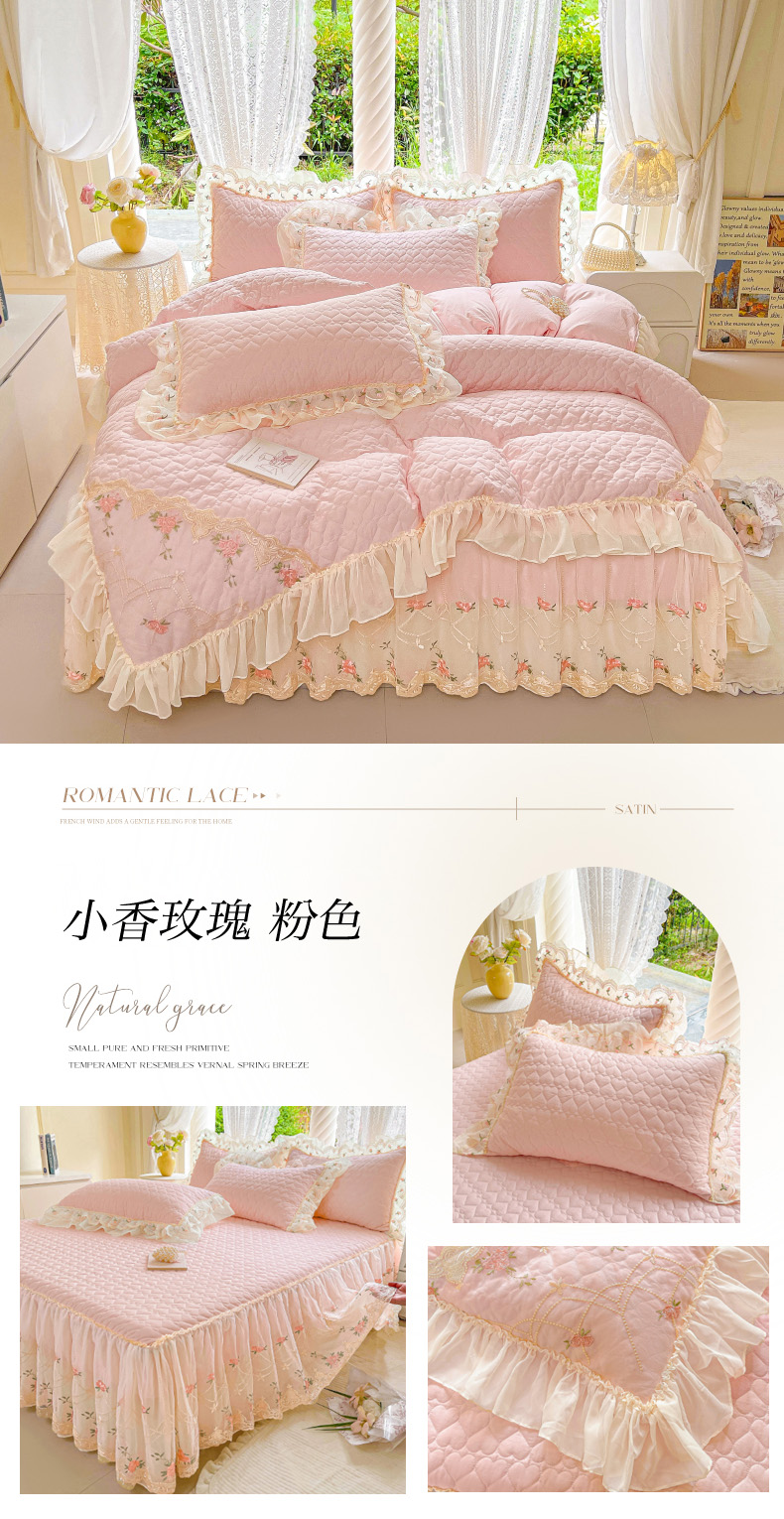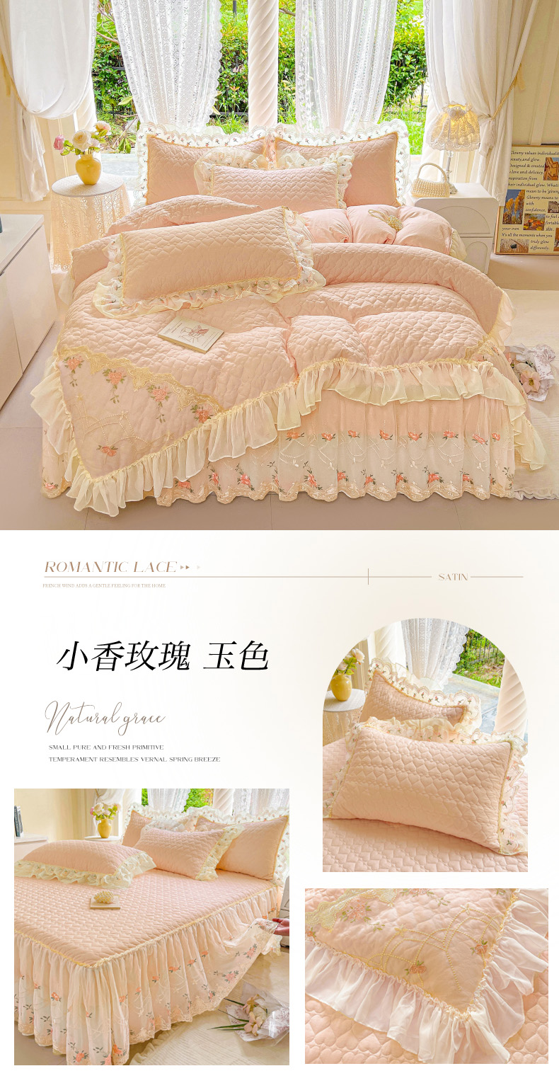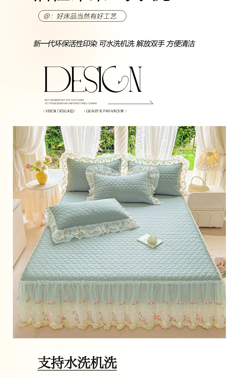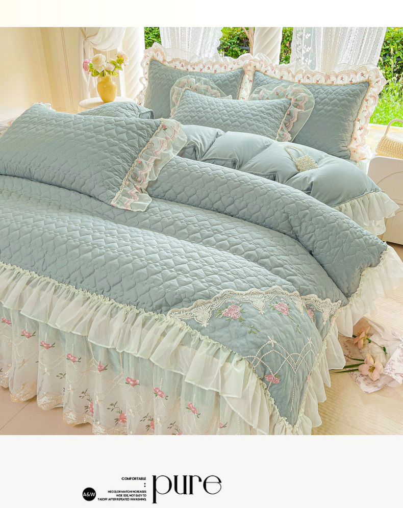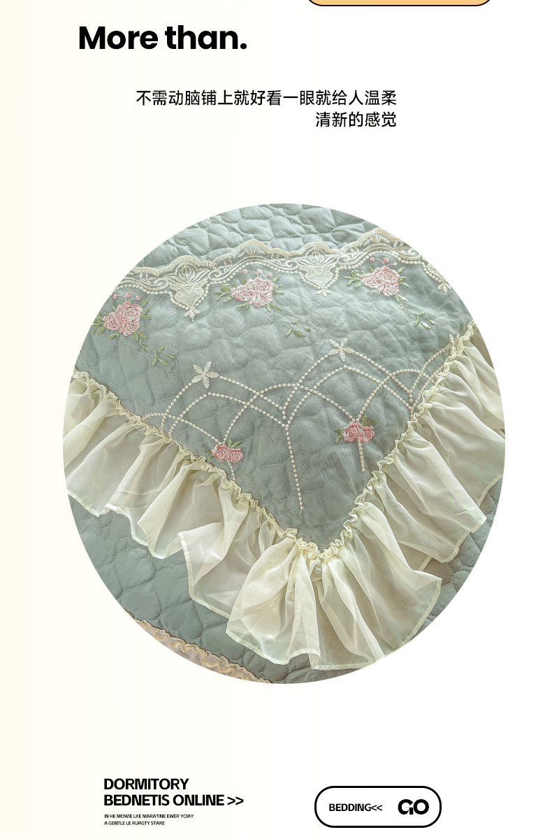 当前位置: 91家纺网 > 商品网购 > 床品套件 > 四件套 > 全棉普通四件套 > 罗艺轩 2025新款全棉蕾丝刺绣床裙四件套-小香玫瑰 小香玫瑰-豆绿