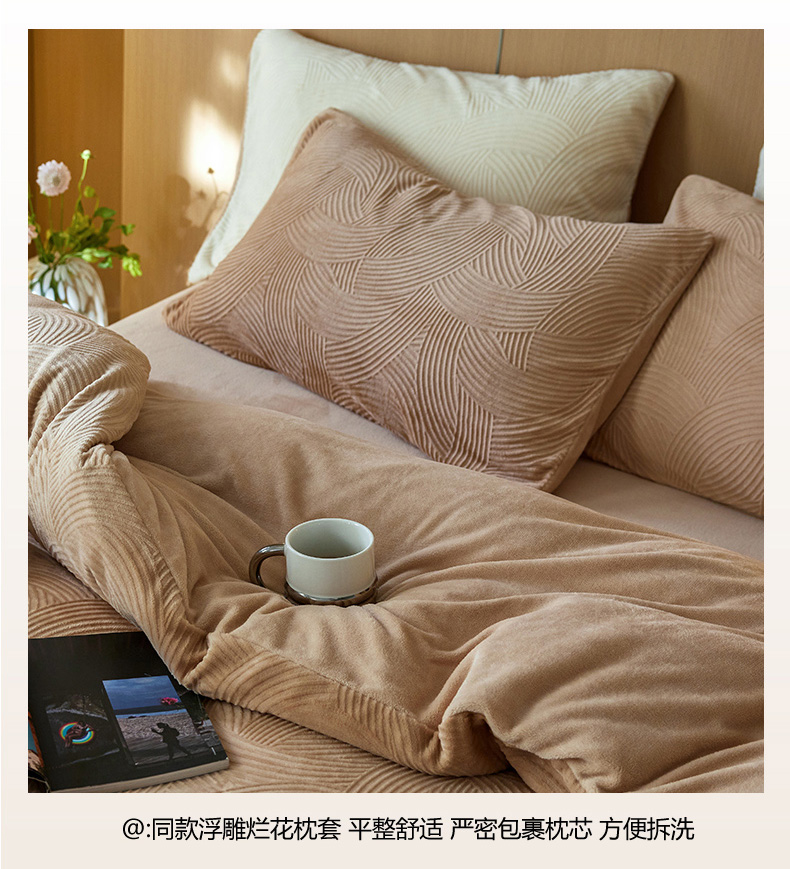 (总)眠博士 2025新款浮雕款烂花牛奶绒加厚保暖莱伊和赛纳四件套