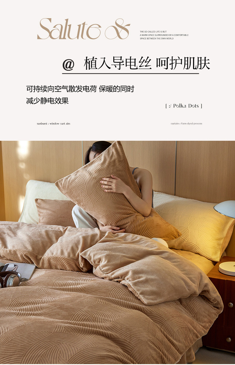 商品名称:(总)眠博士 2025新款浮雕款烂花牛奶绒加厚保暖莱伊和赛纳四件套