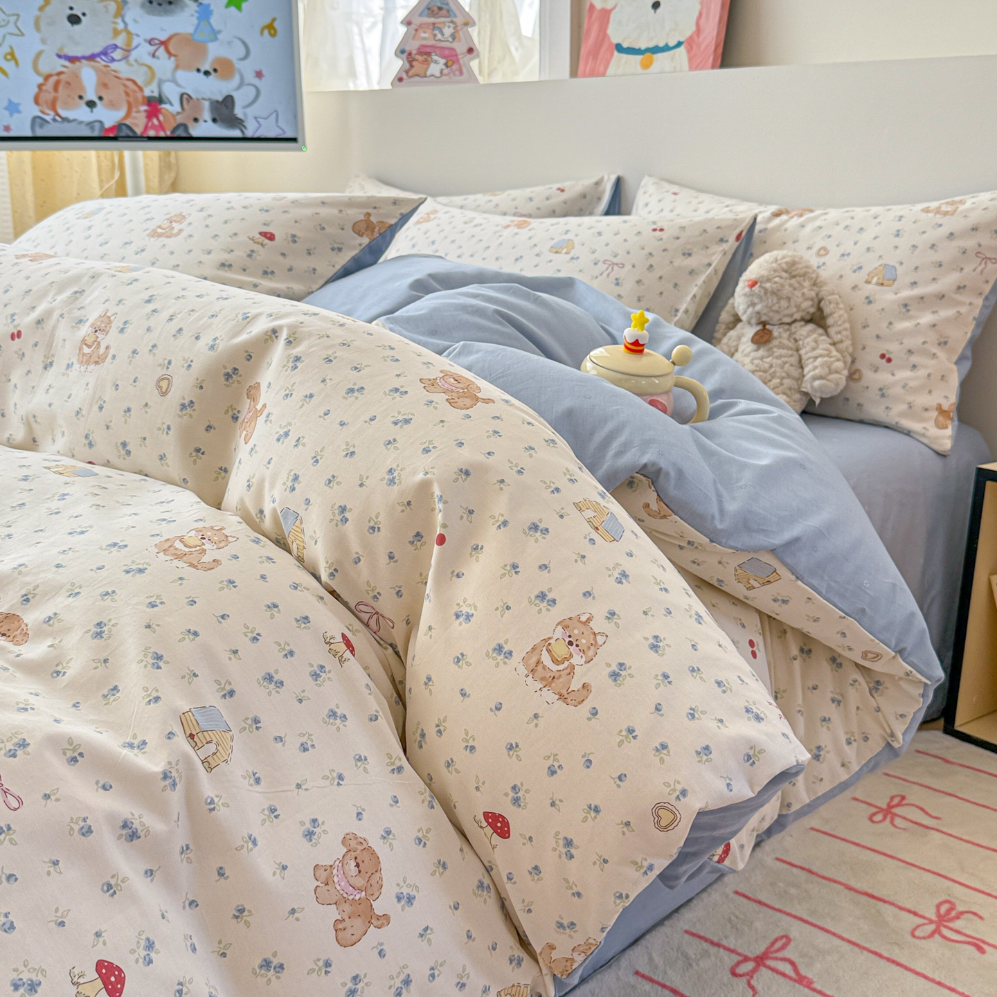 2025新款全棉卡通小清新系列四件套 蘑菇狗