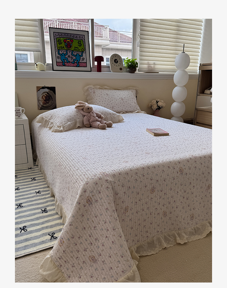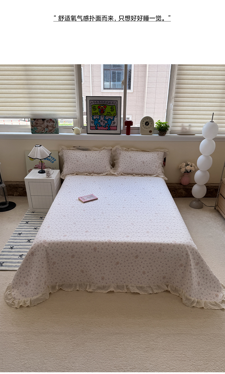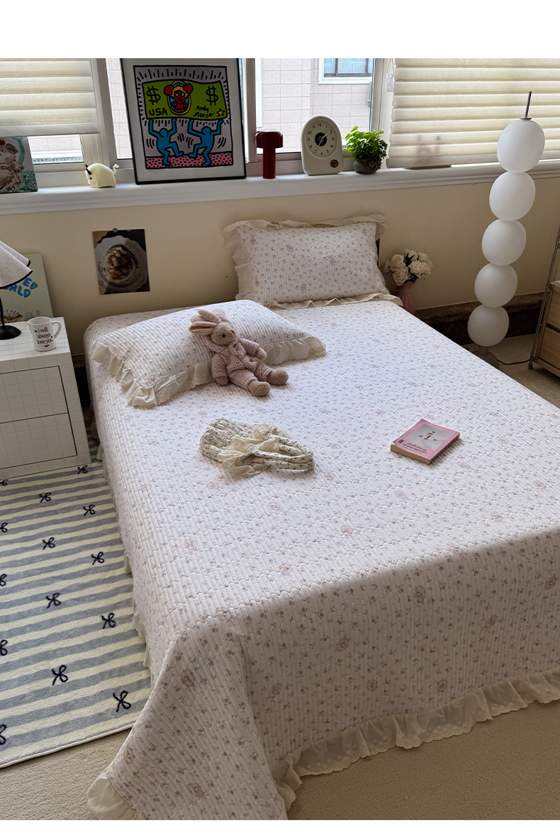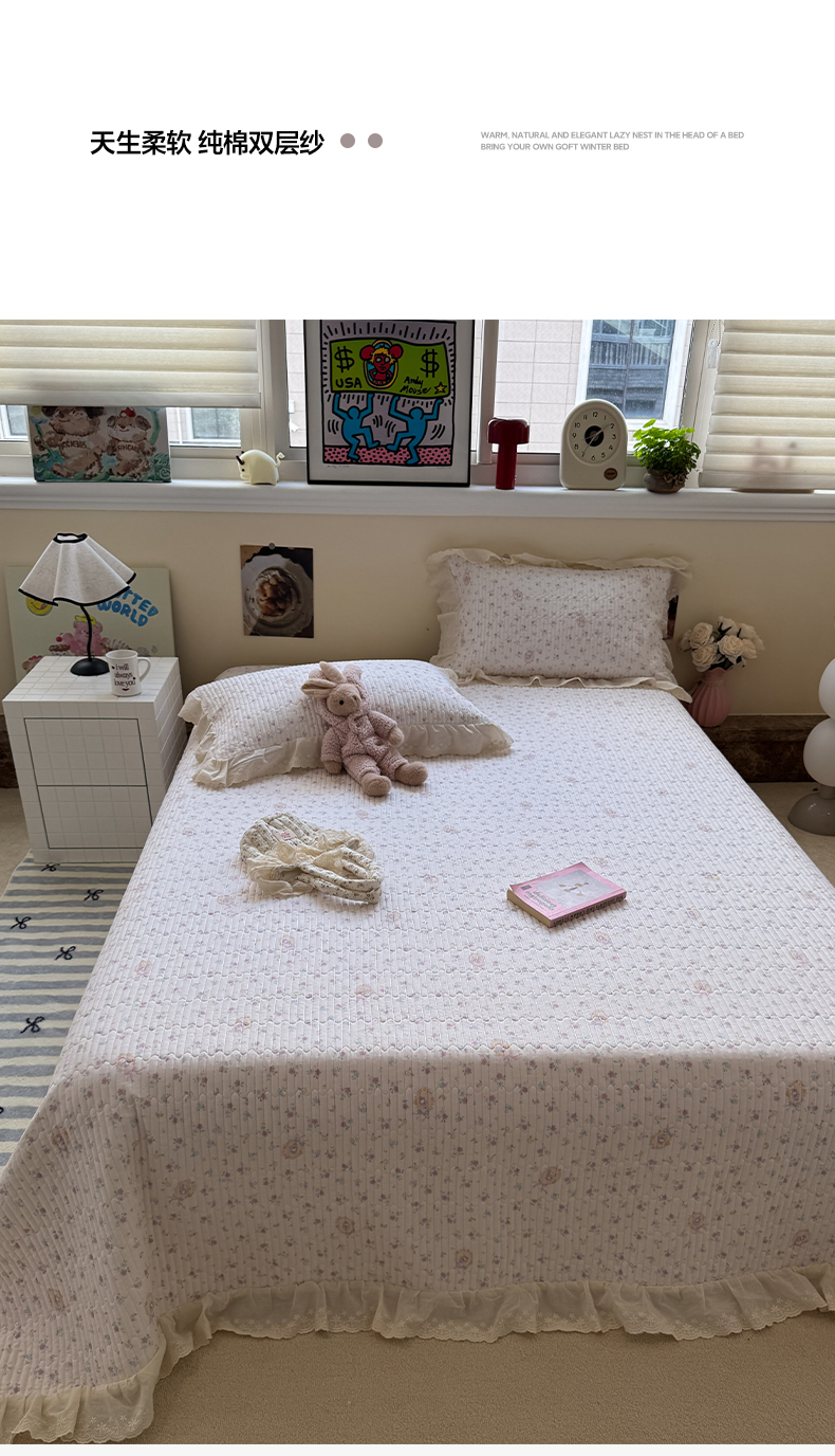 商品名称:一加一 2025新款全棉纯棉双层纱田园风单床盖床盖单件单品床盖 兰絮-粉