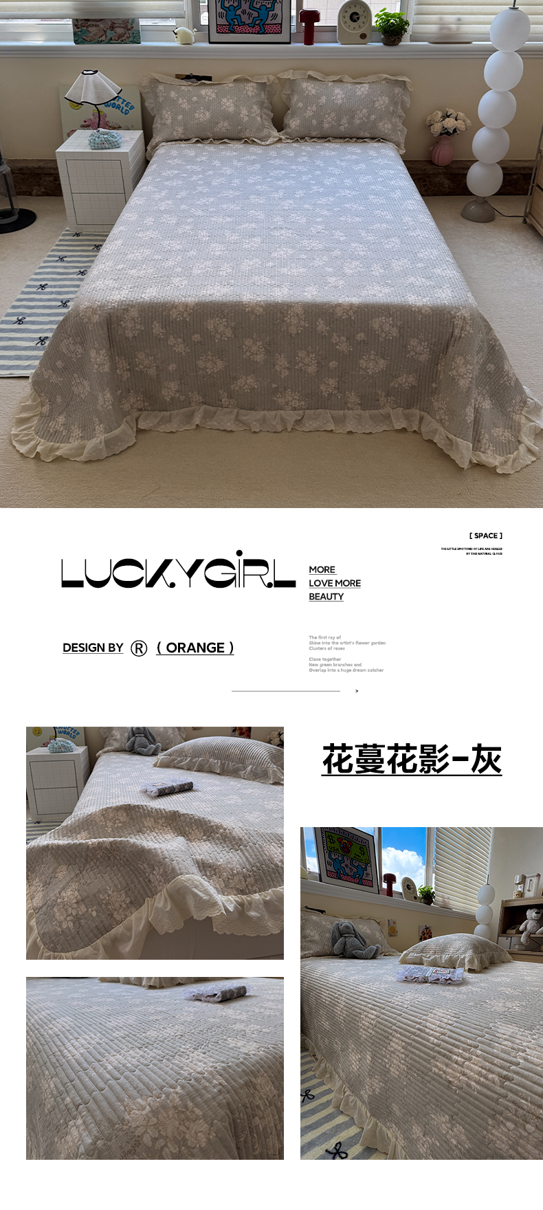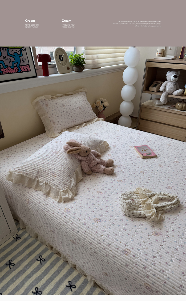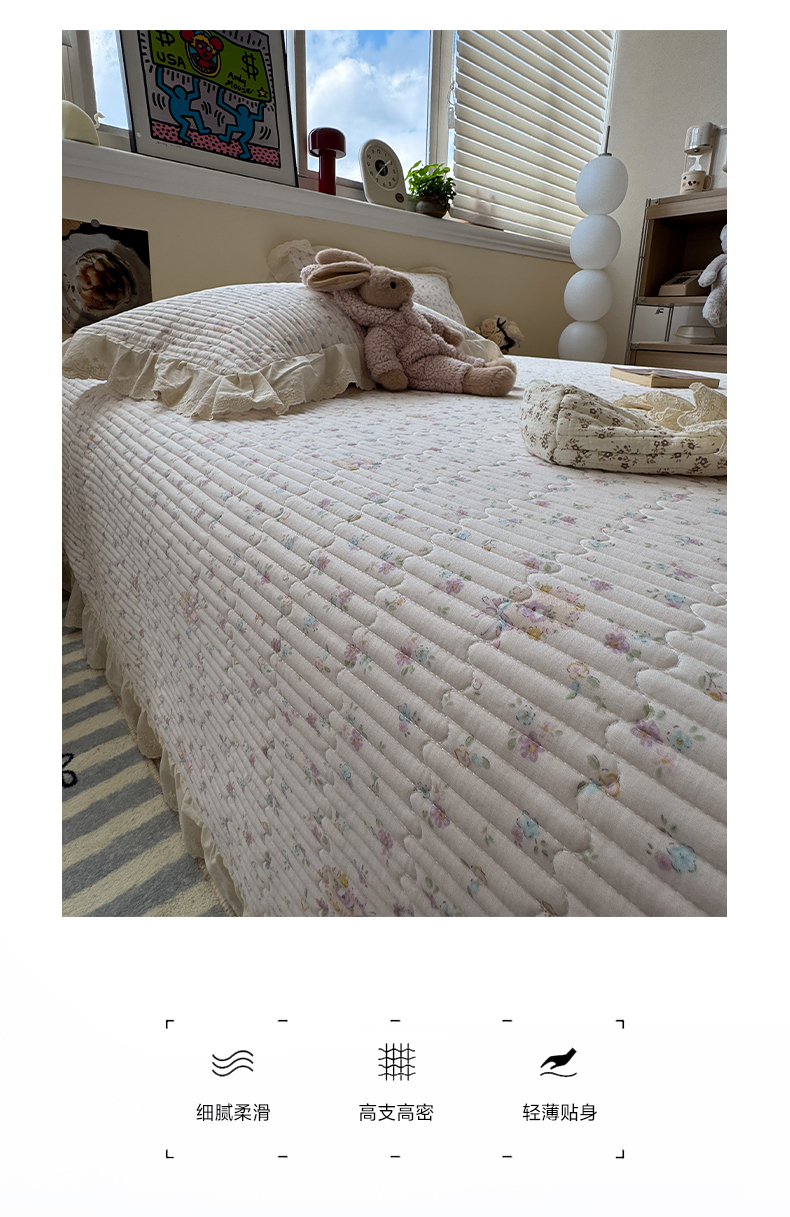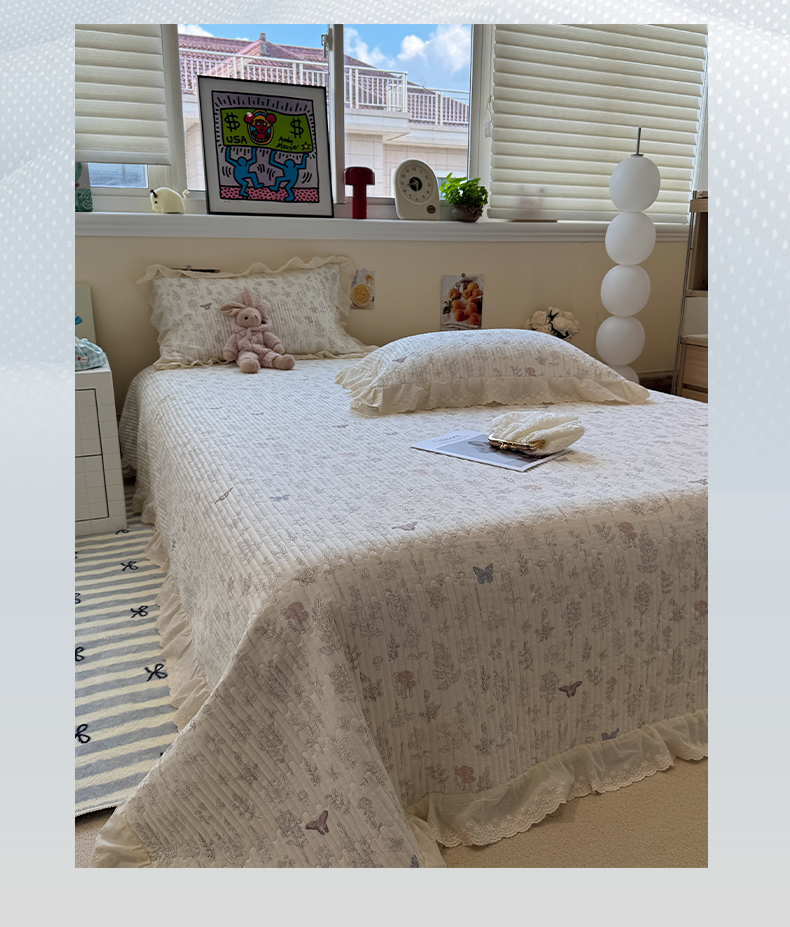 商品名称:一加一 2025新款全棉纯棉双层纱田园风单床盖床盖单件单品床盖 兰絮-粉