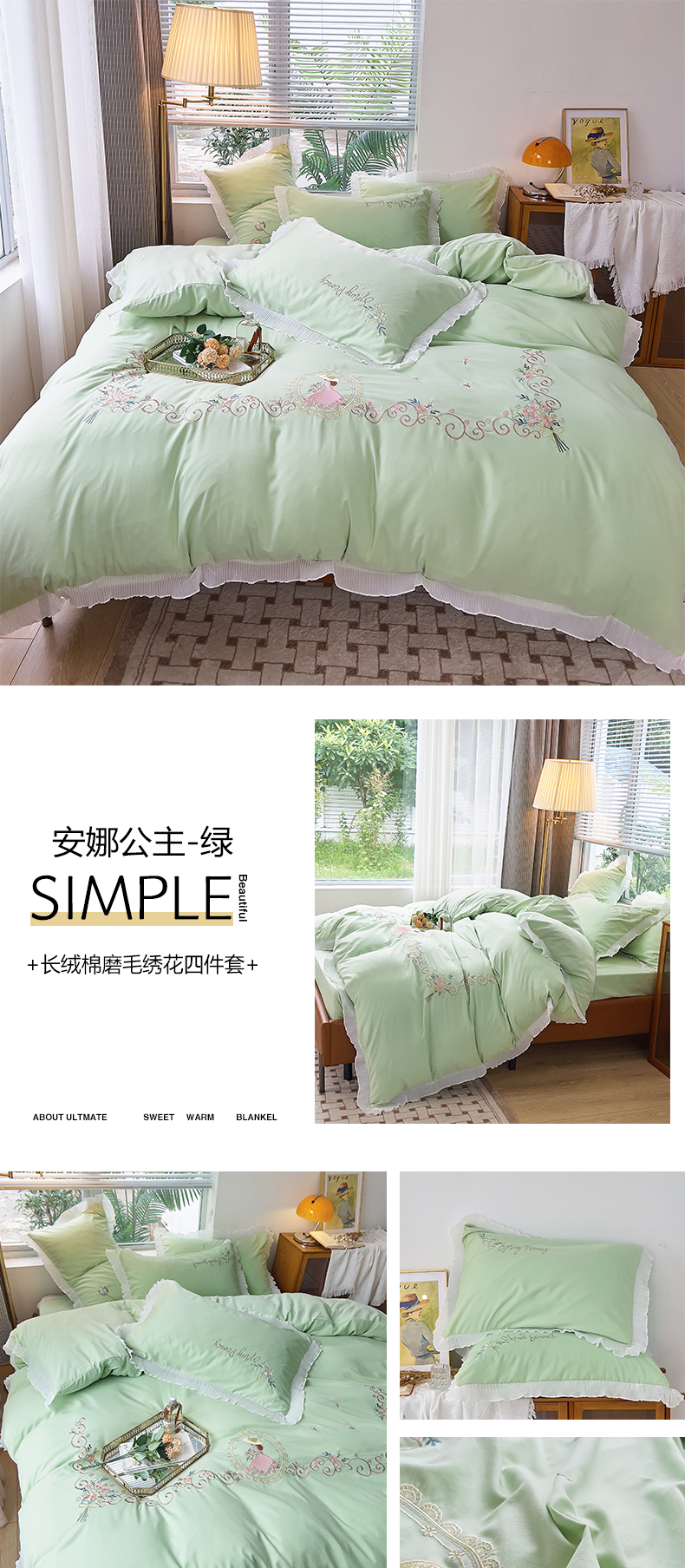 (总)青泽家纺 2025新款母婴级ins风韩版绣花荷叶边水洗棉磨毛四件套,缤纷花园绿,安娜公主蓝,安娜公主绿,安娜公主玉,缤纷花园白,手捧花白色,手捧花蓝,手捧花绿,手捧花玉色,缤纷花园玉色,飞羽-高级灰,蝶舞-白,蝶舞-蓝,蝶舞-玉,花恋 白,花恋-蓝,花恋-绿,花恋-玉