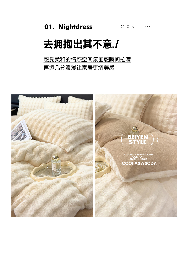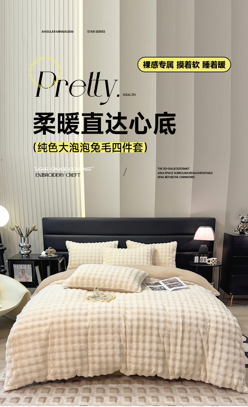 商品名称:(总)摩妮卡 2025新款加厚大泡泡兔毛牛奶绒四件套