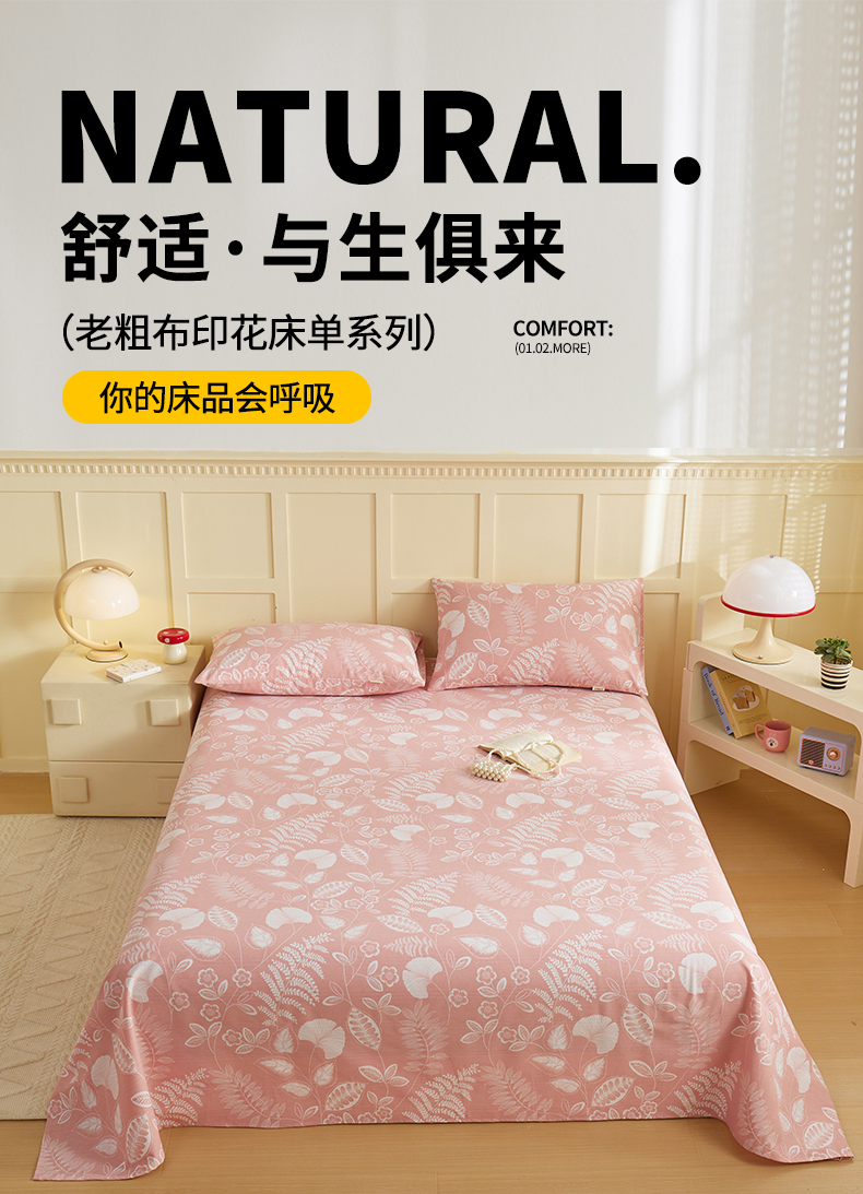 当前位置: 91家纺网 > 商品网购 > 床品套件 > 三件套 > 青泽家纺 2025年新款老粗布床单原棉三枚缎卡老粗布凉席三件套亚麻棉麻床单枕套 时光花语