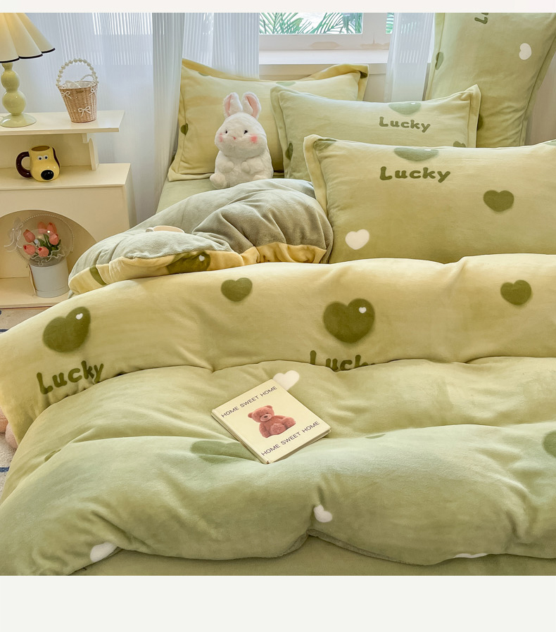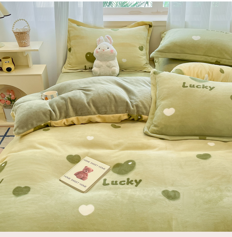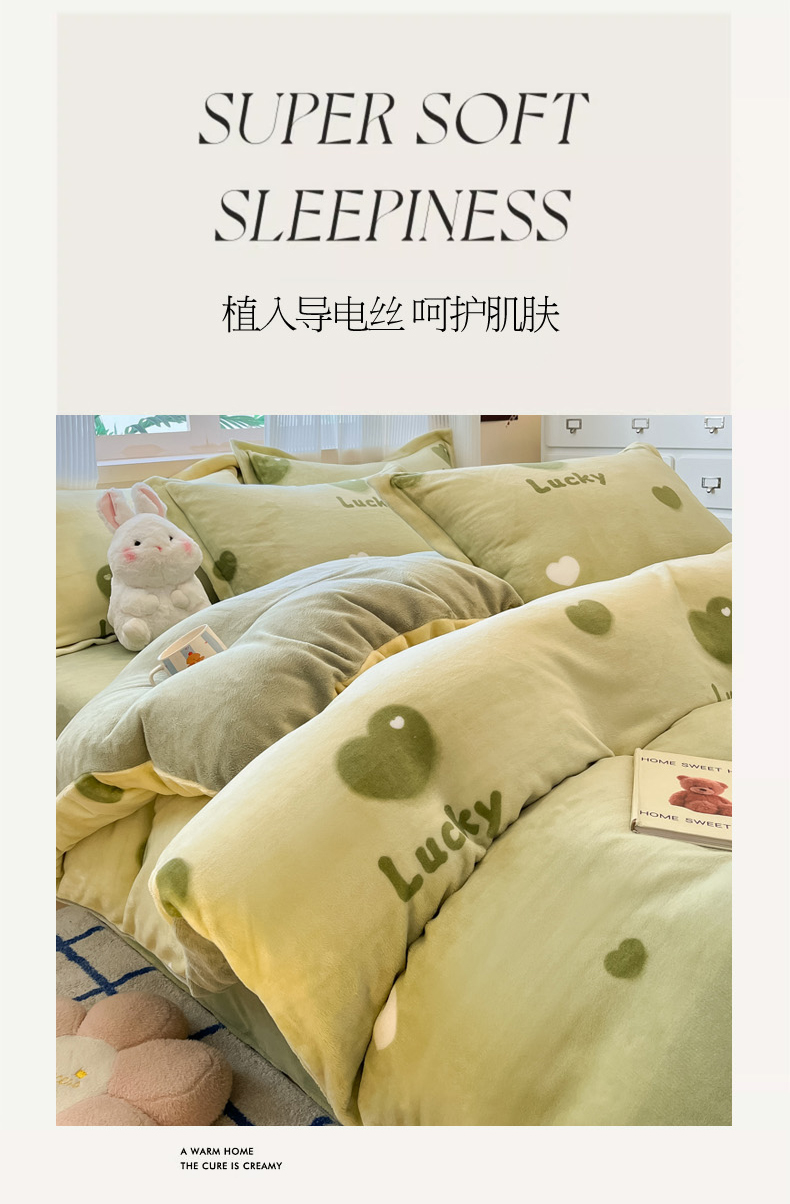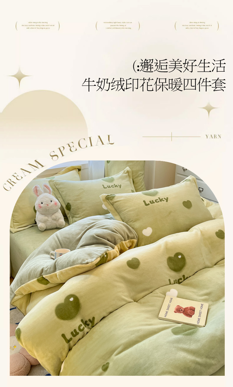 当前位置: 91家纺网 > 商品网购 > 床品套件 > 四件套 > 牛奶绒四件套 > 柒月家居 2025新款加厚200克牛奶绒四件套 爱心满满