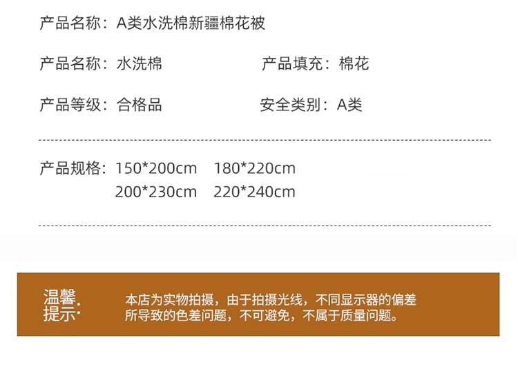 商品名称:(总)圣尔雅家纺 2025新款A类水洗棉新疆棉花被无印风冬被加厚保暖被子被芯四季通用被子