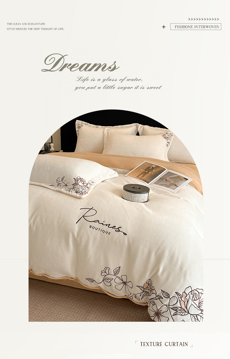 (总)金牛座家纺 2025新款婴儿绒刺绣提花四件套凯艺系列四件套,凯艺-豆沙粉,凯艺-灰,凯艺-精致蓝,凯艺-奶白,凯艺-香槟