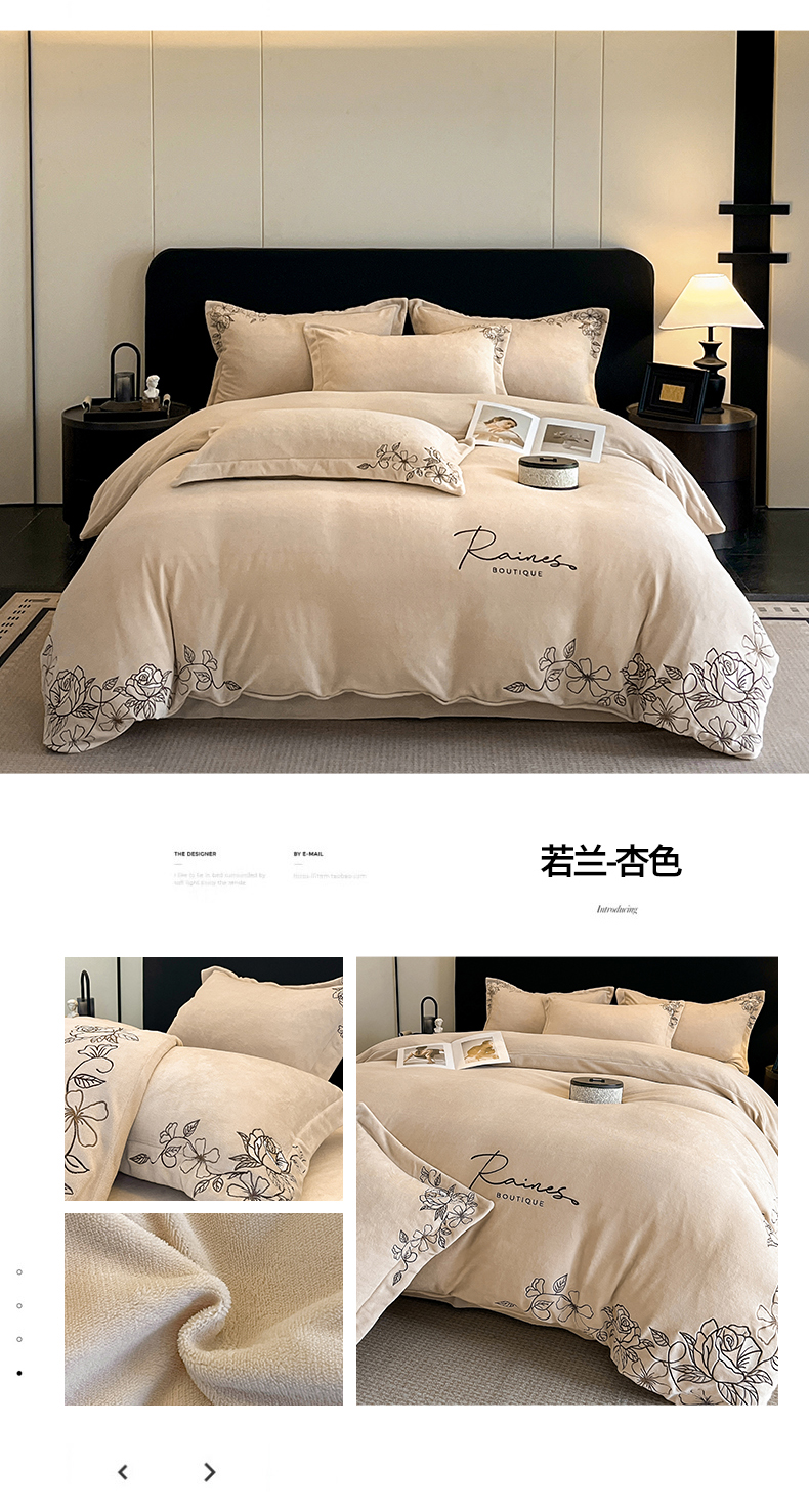(总)金牛座家纺 2025新款加厚牛奶绒轻奢刺绣四件套-若兰,若兰-杏色,若兰-奶白,若兰-嫩粉,若兰-浅灰,若兰-浅紫