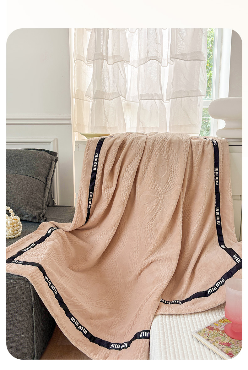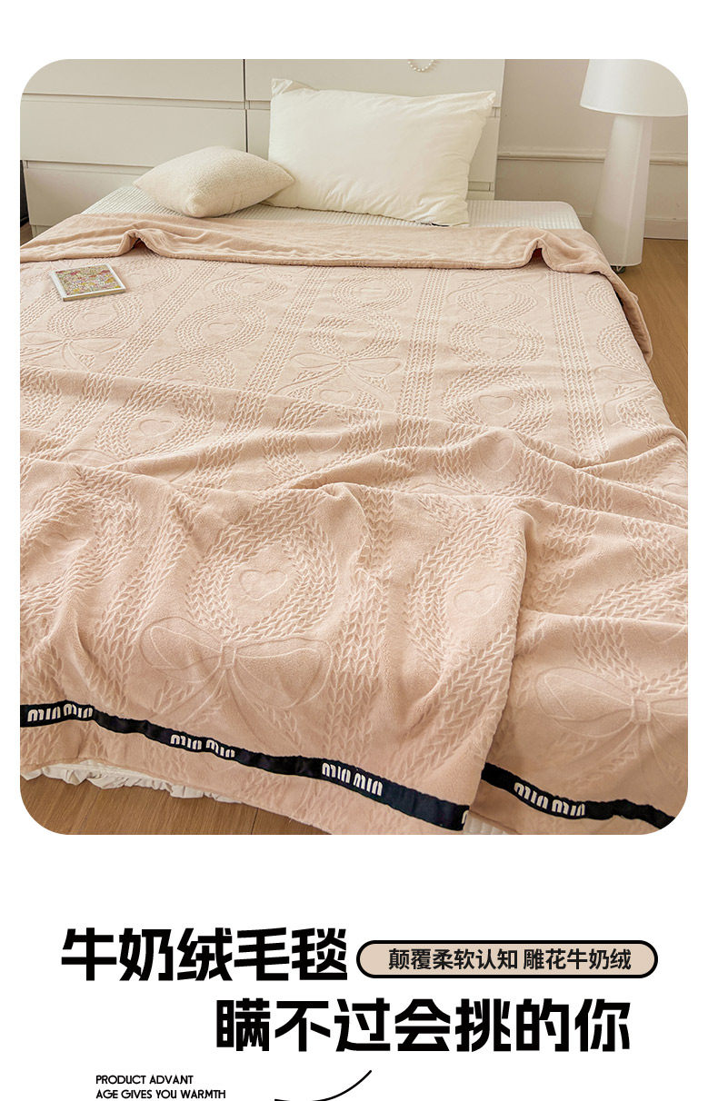 悦织湾家纺 2025新款雕花牛奶绒压线毛毯轻奢时尚高品盖毯办公室午睡沙发休闲毯子跨境专供外贸 柔缦雕花-粉
