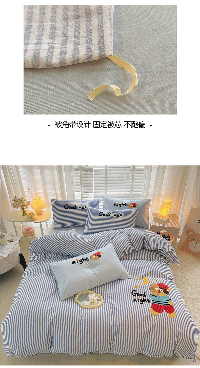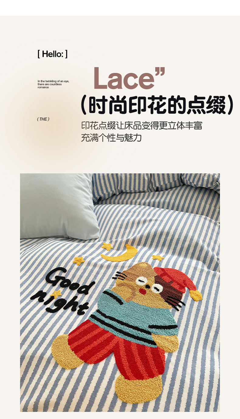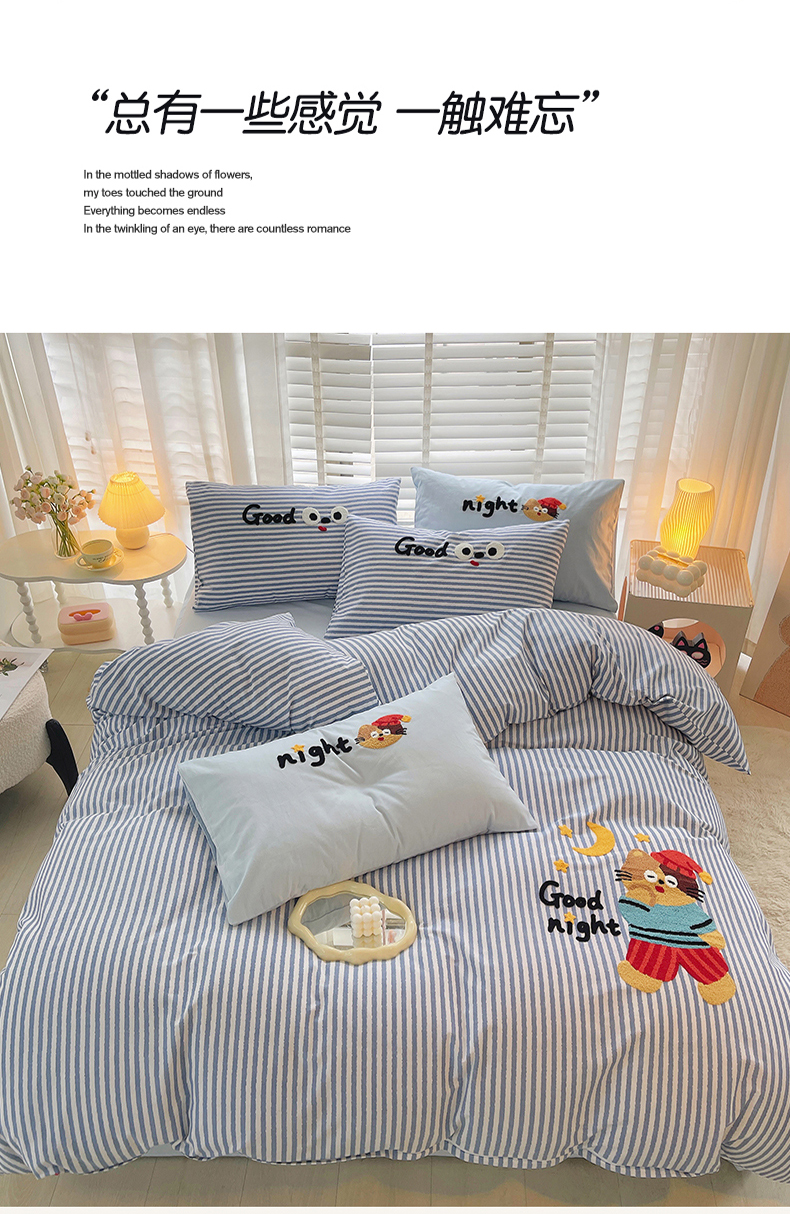 炫拼家纺 2025新款全棉磨毛卡通贴布绣加厚毛巾绣纯棉四件套-曲奇系列 曲奇-晚安猫