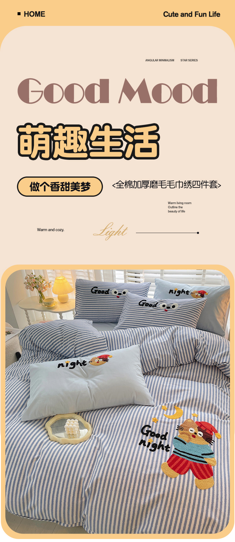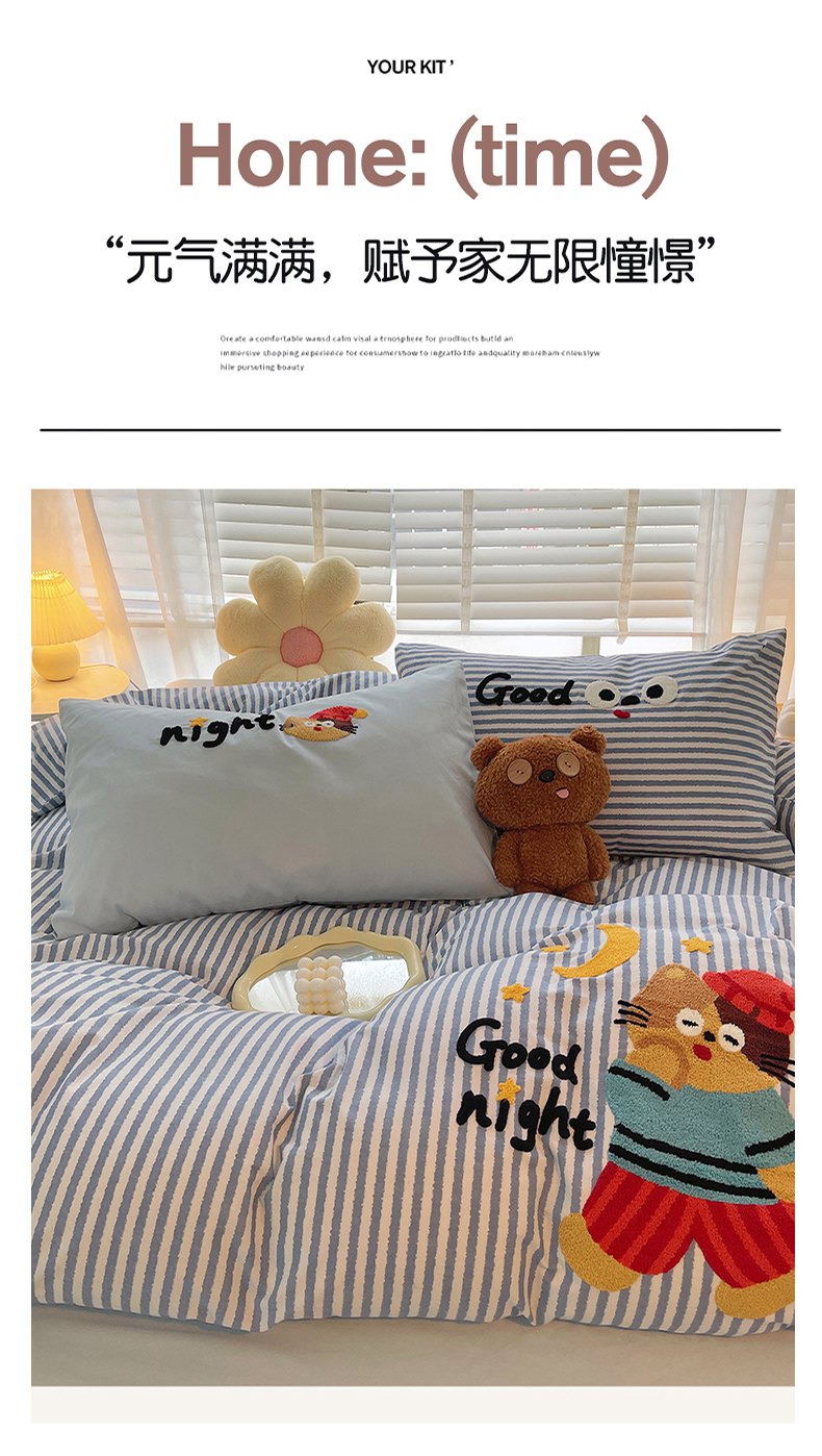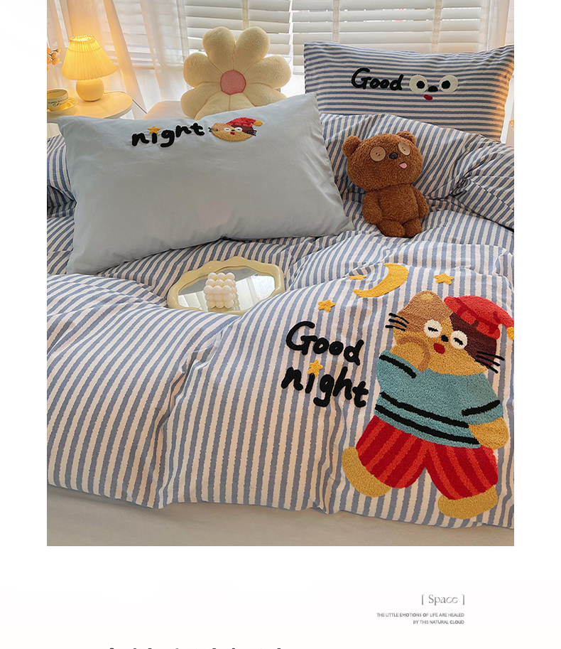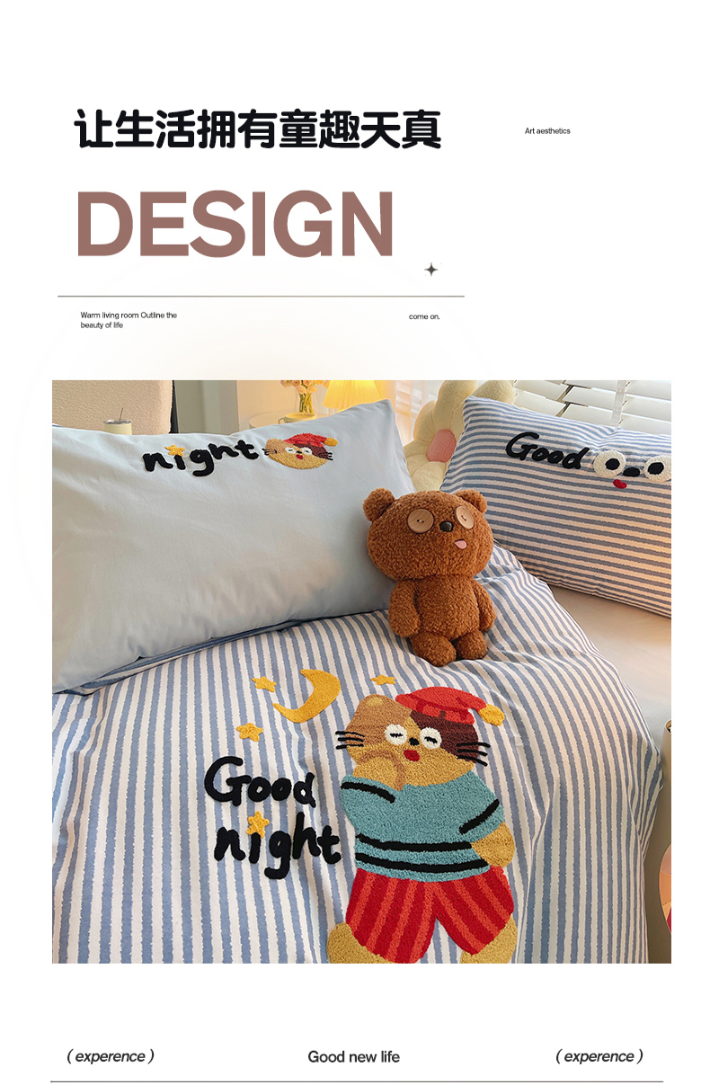 炫拼家纺 2025新款全棉磨毛卡通贴布绣加厚毛巾绣纯棉四件套-曲奇系列 曲奇-晚安猫