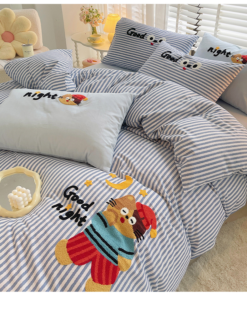 (总)炫拼家纺 2025新款高克重牛奶绒格子卡通毛巾绣加厚四件套-糖宝系列,糖宝-半勺清风,糖宝-喵了个咪,糖宝-甜豆女孩,糖宝-汪星日记,糖宝-星球萌宠,糖宝-元气小猪