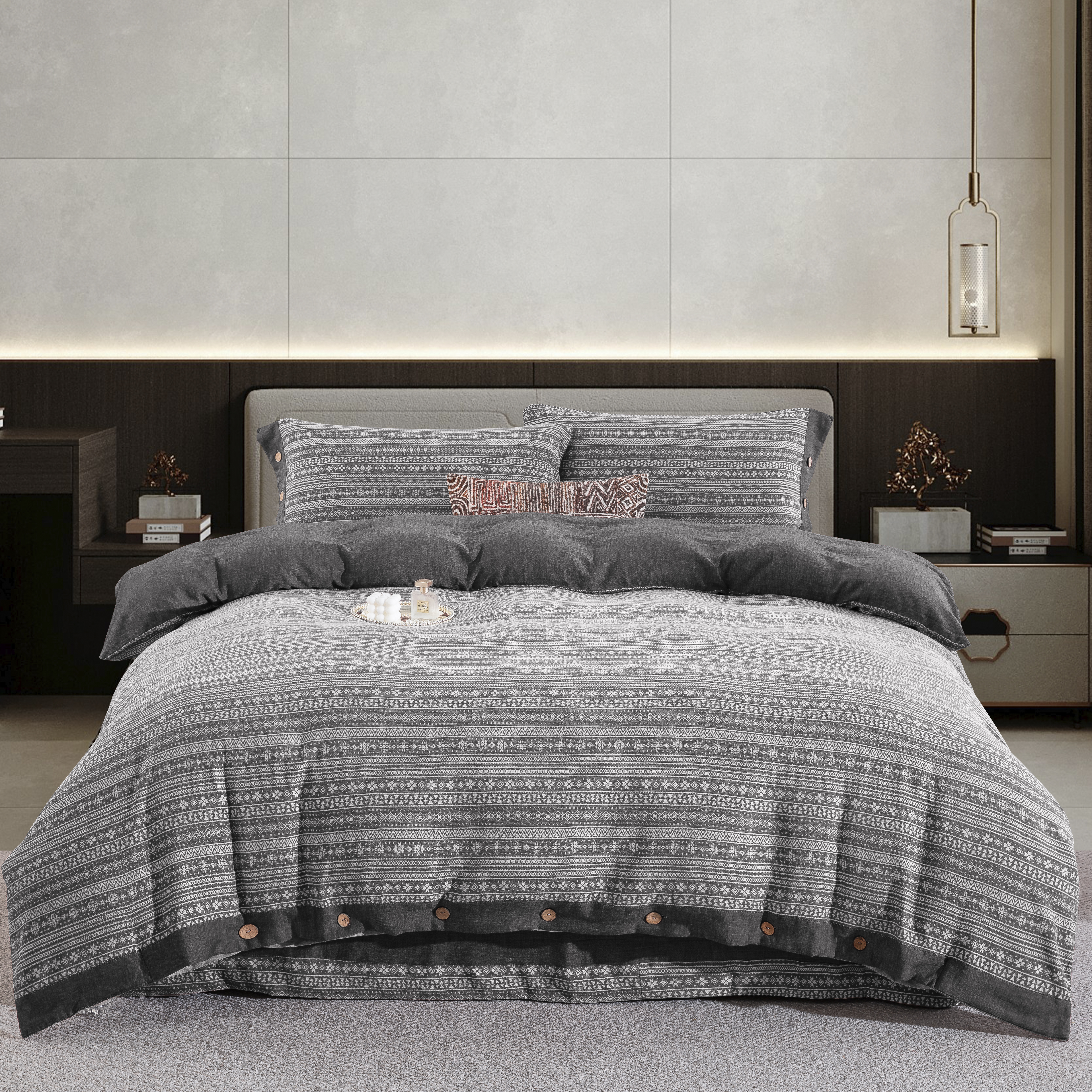 鲁爱家纺供货 2025新款全棉色织提花四件套 布拉格-灰