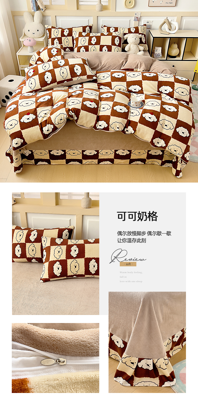 商品名称:找底底家纺 2025新款牛奶绒四件套(日发50套优惠8元一套) 可可奶格