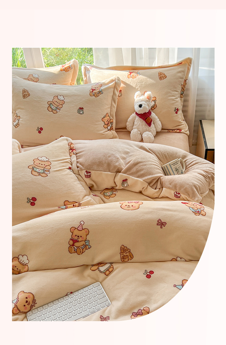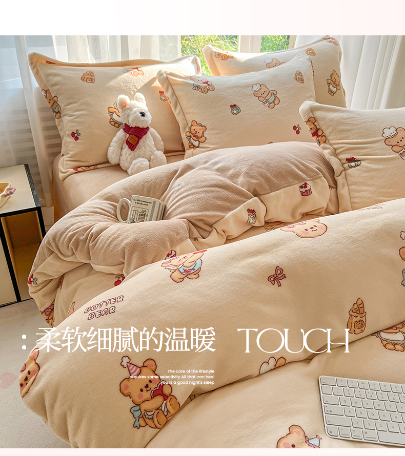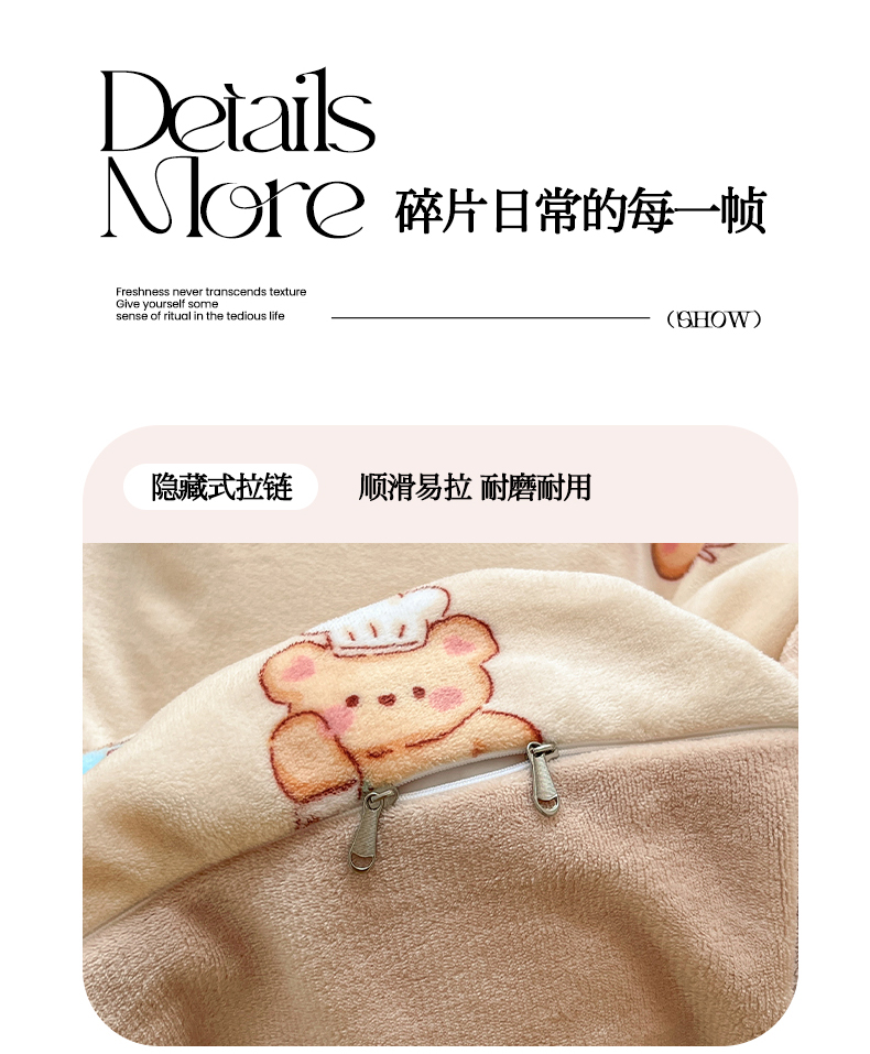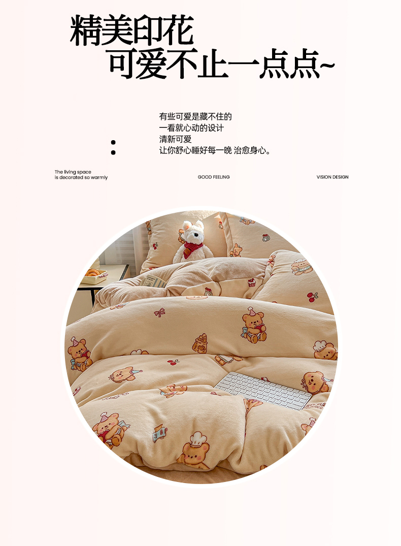 当前位置: 91家纺网 > 商品网购 > 床品套件 > 四件套 > 牛奶绒四件套 > 妖妖家纺 2025新款高克重200克牛奶绒印花四件套 厨师曲奇熊