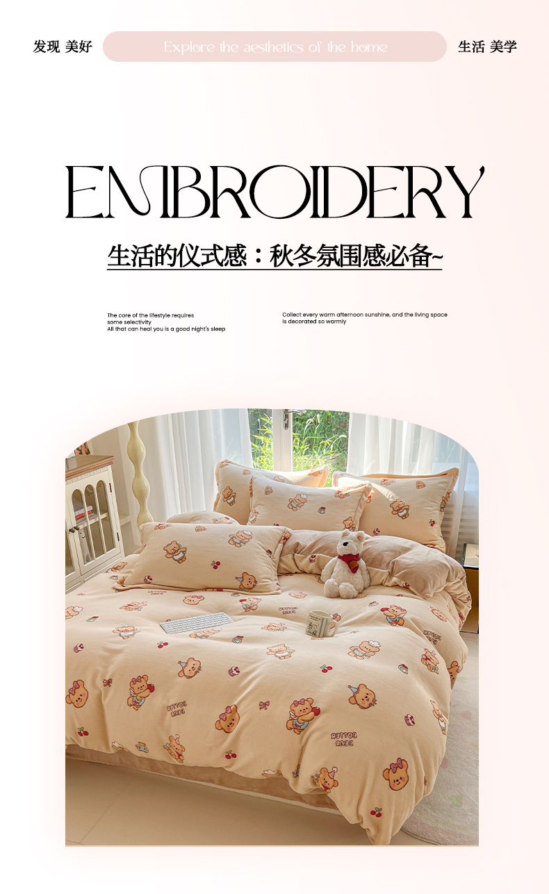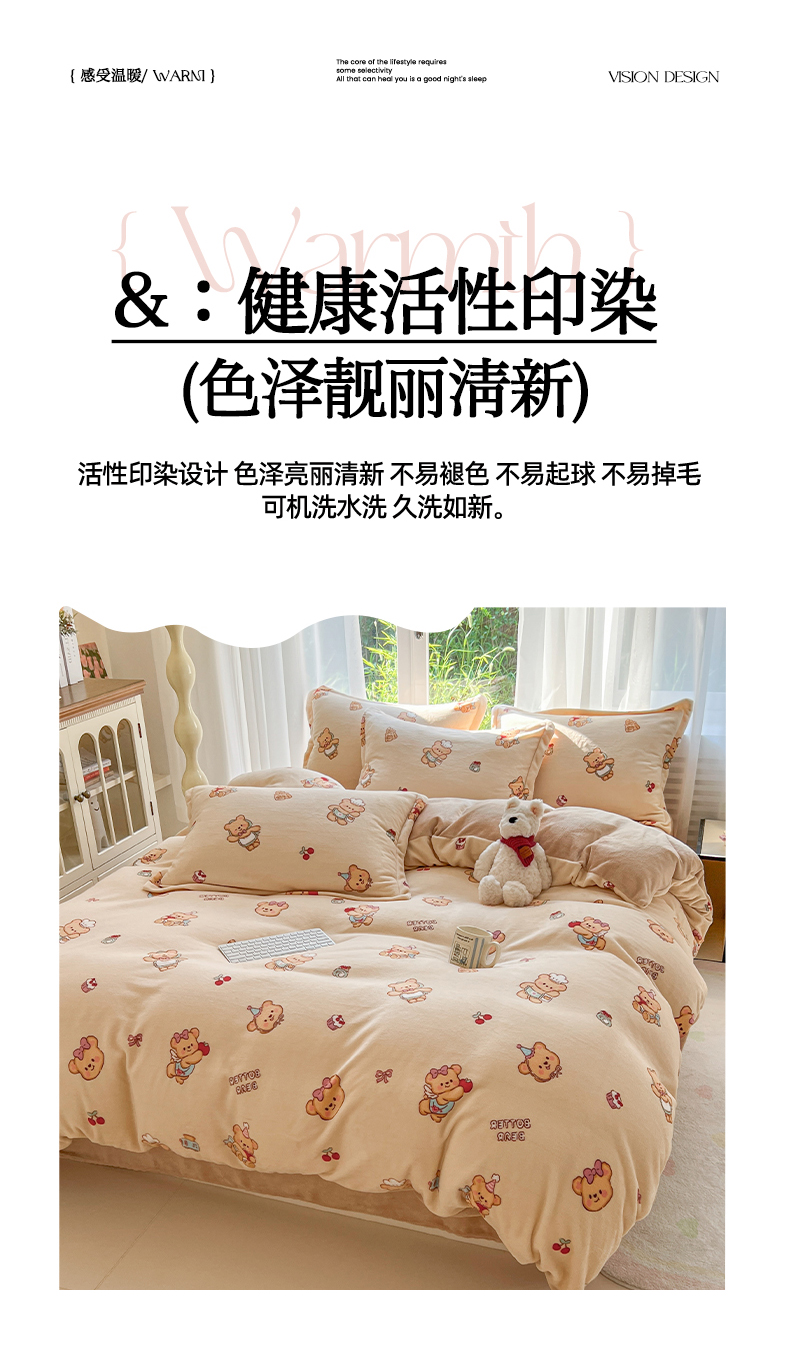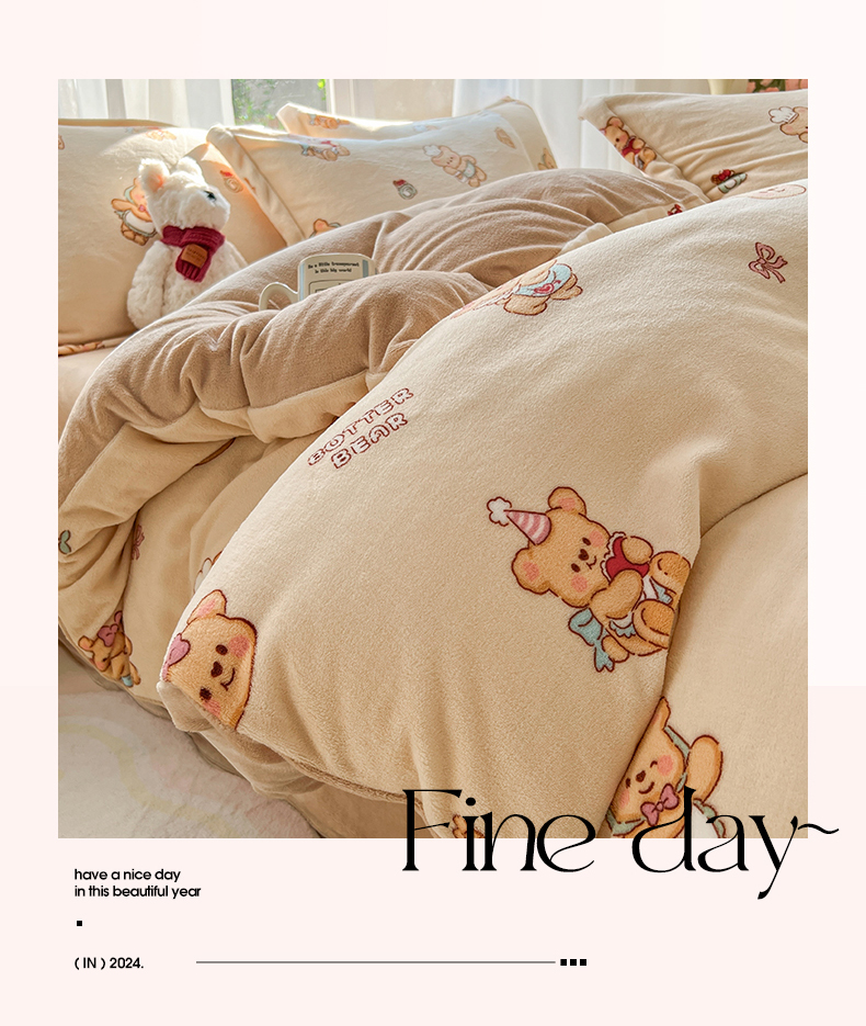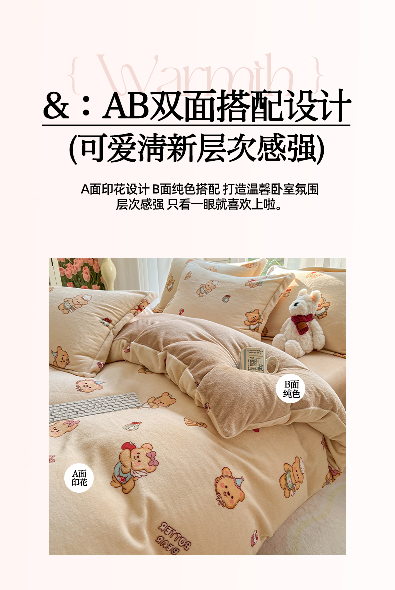 当前位置: 91家纺网 > 商品网购 > 床品套件 > 四件套 > 牛奶绒四件套 > 妖妖家纺 2025新款高克重200克牛奶绒印花四件套 厨师曲奇熊